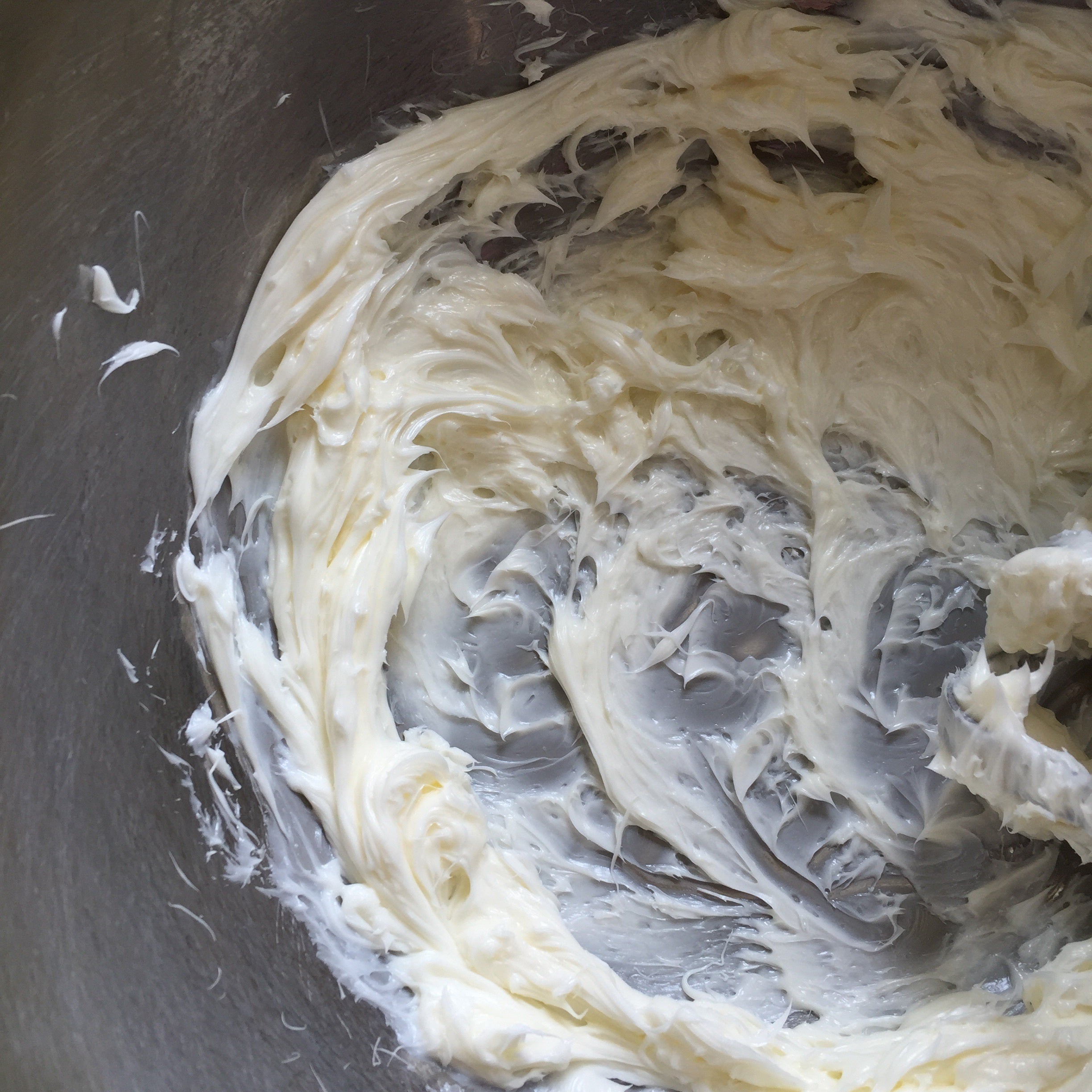 ②バターを泡立て器やハンドミキサーで柔らかいクリーム状にします。