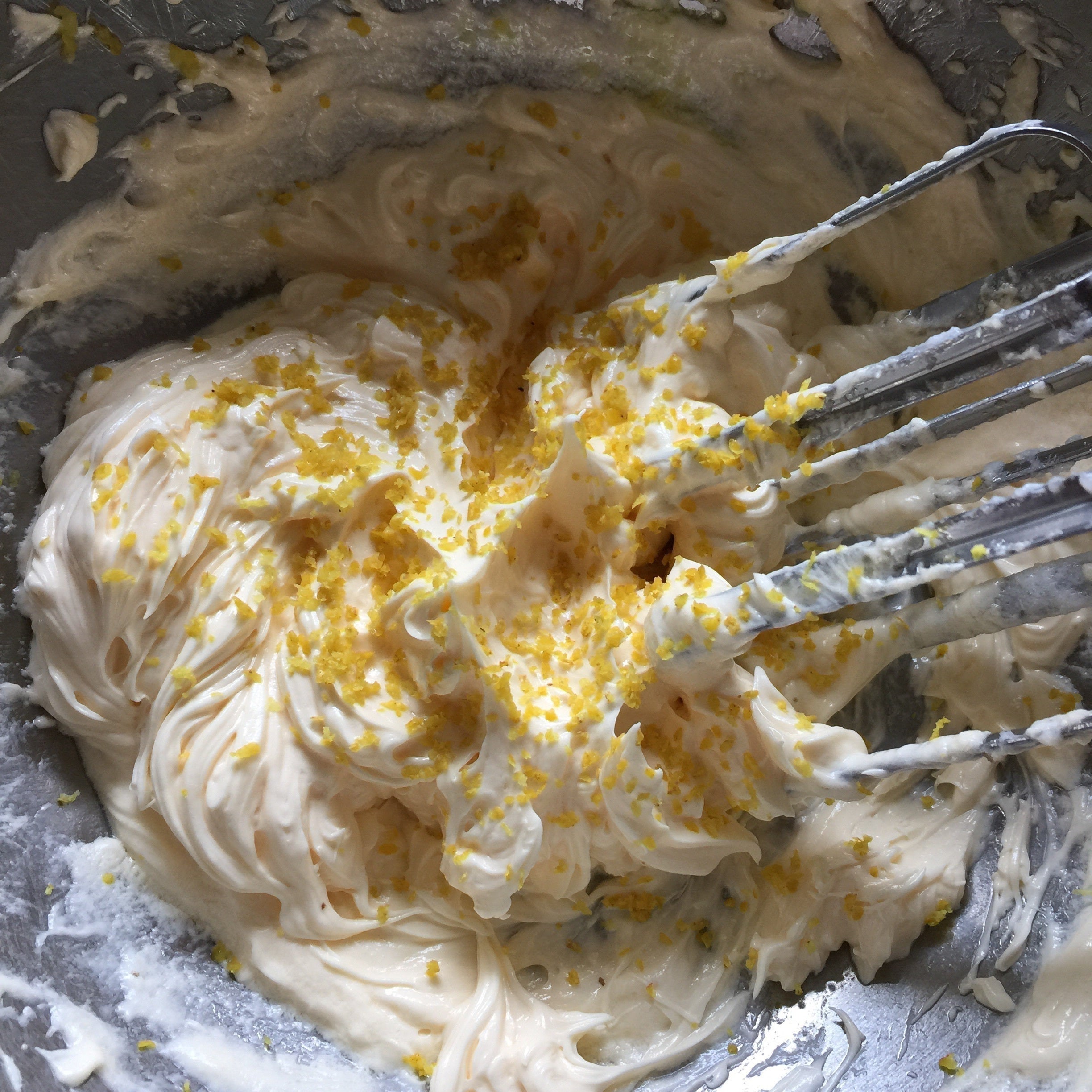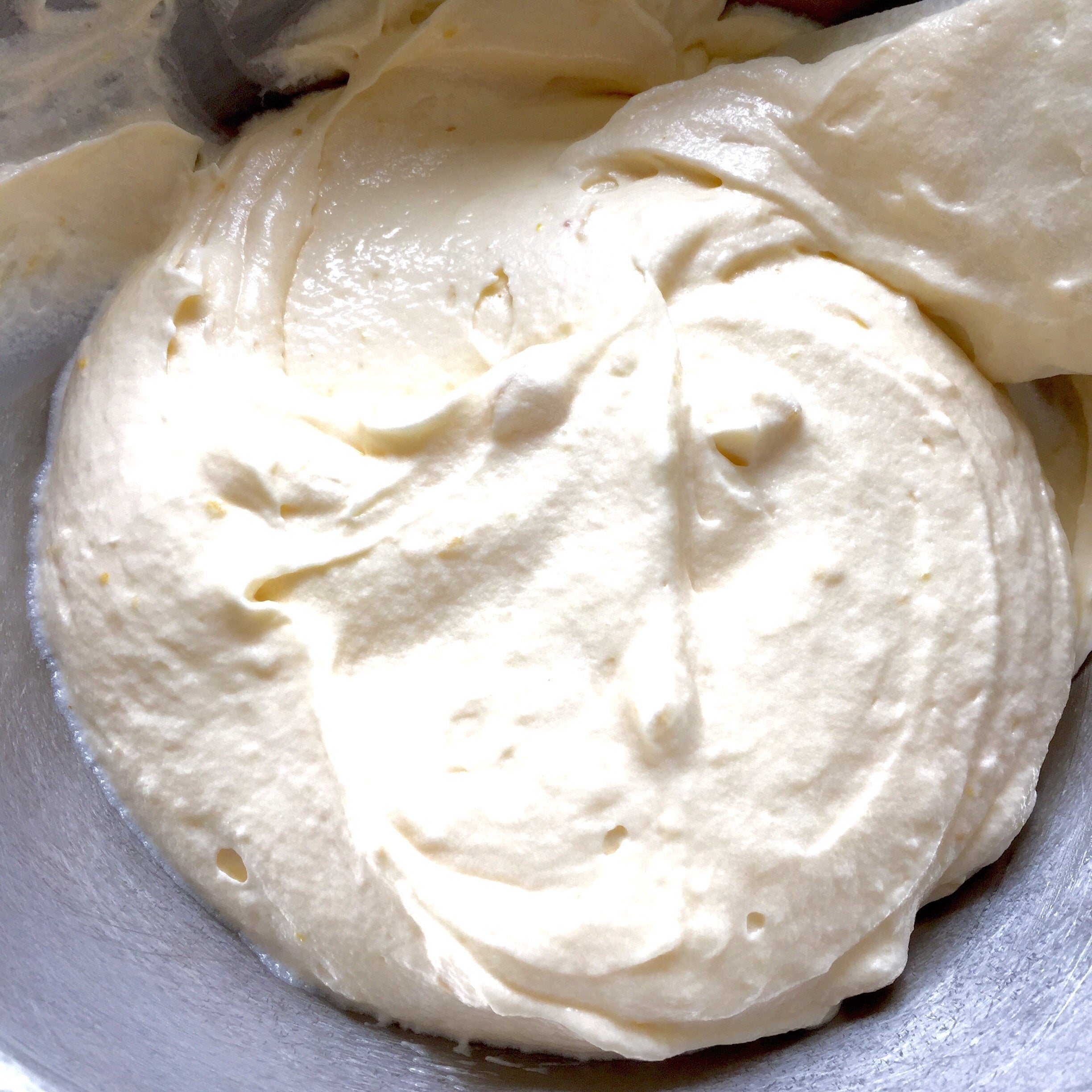 ⑥しっかりと混ぜた生地にすりおろしたレモンの皮を入れて更に混ぜます。