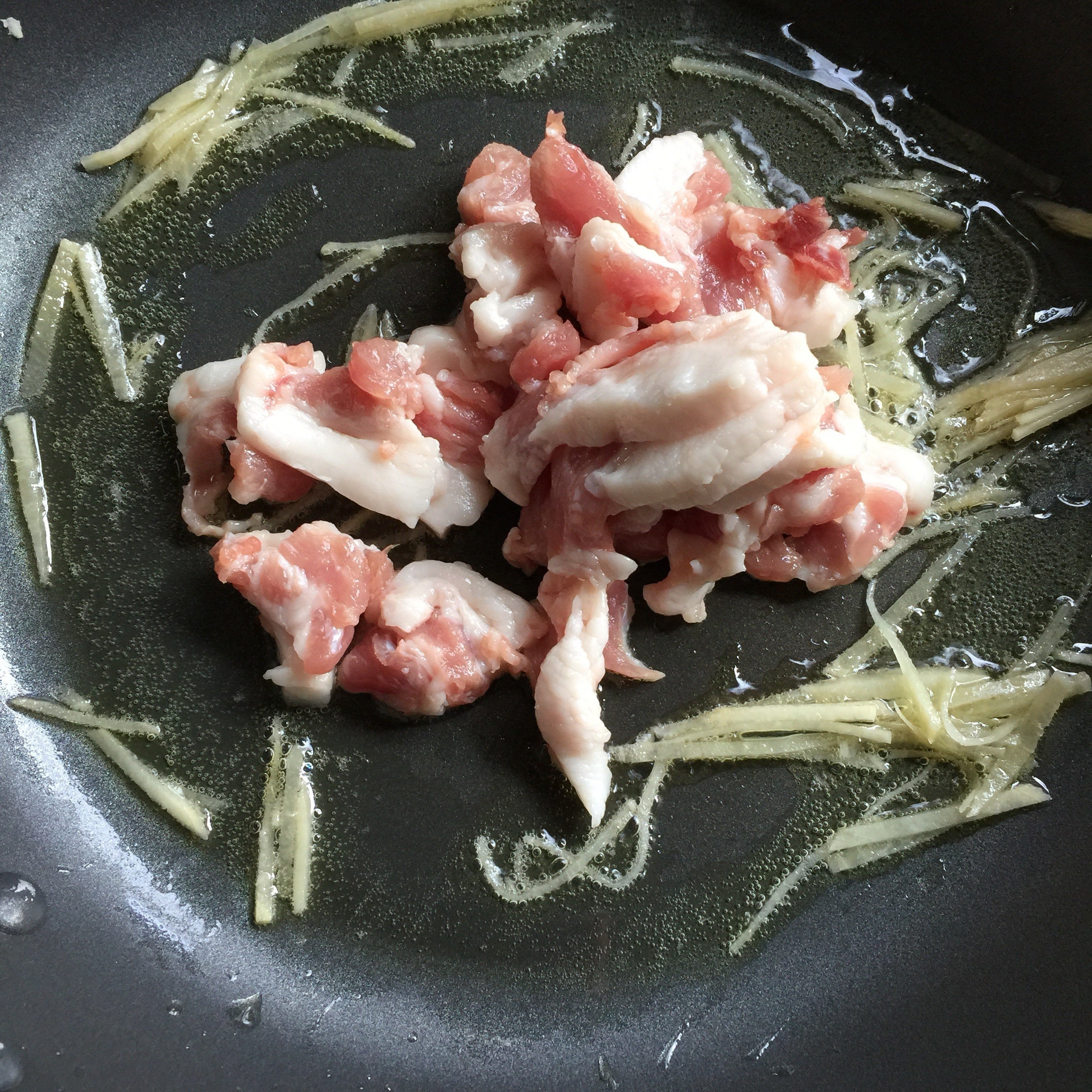 ⑥生姜がしんなりしてきたら豚肉を入れて炒めます。