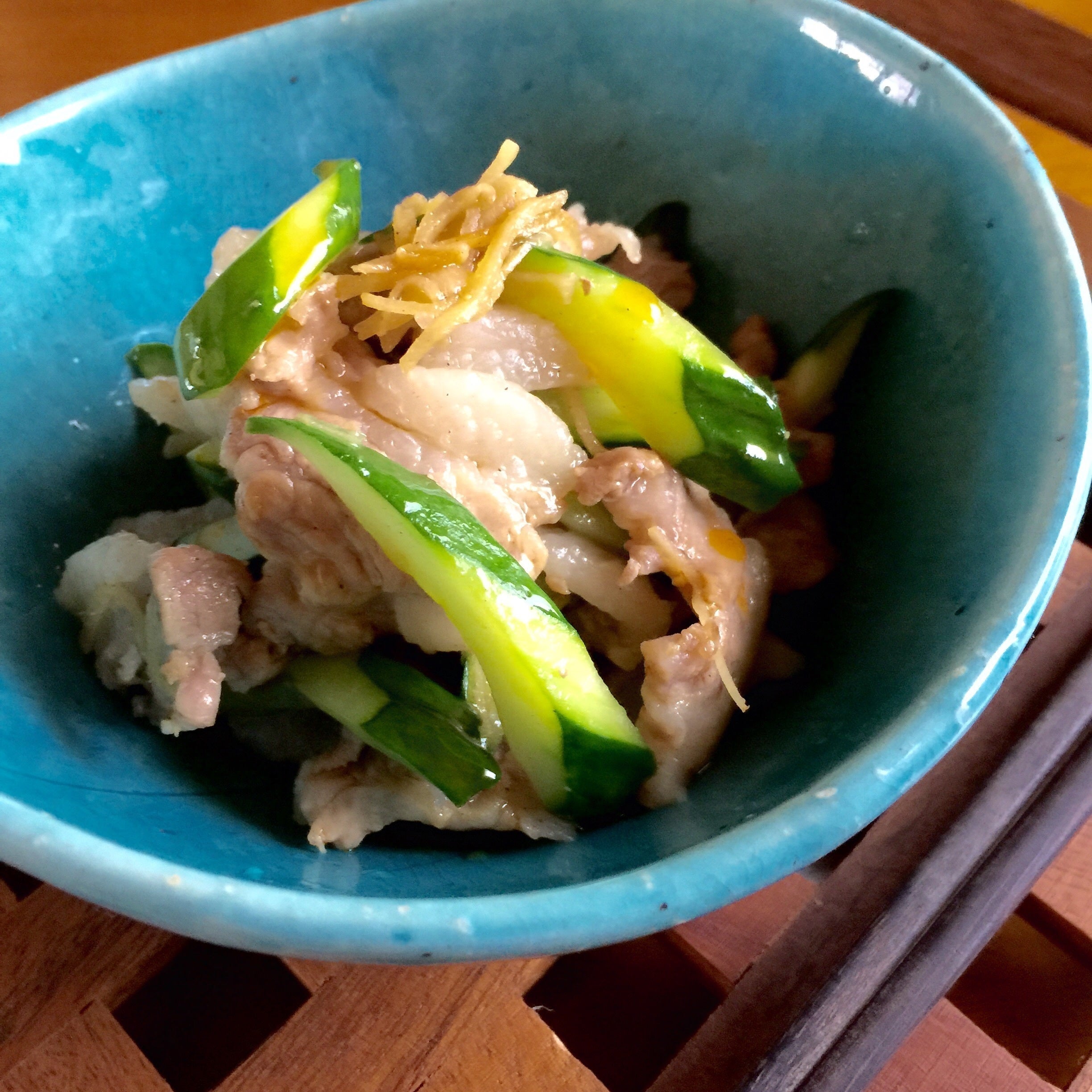 きゅうりと豚肉のピリ辛生姜焼きです。