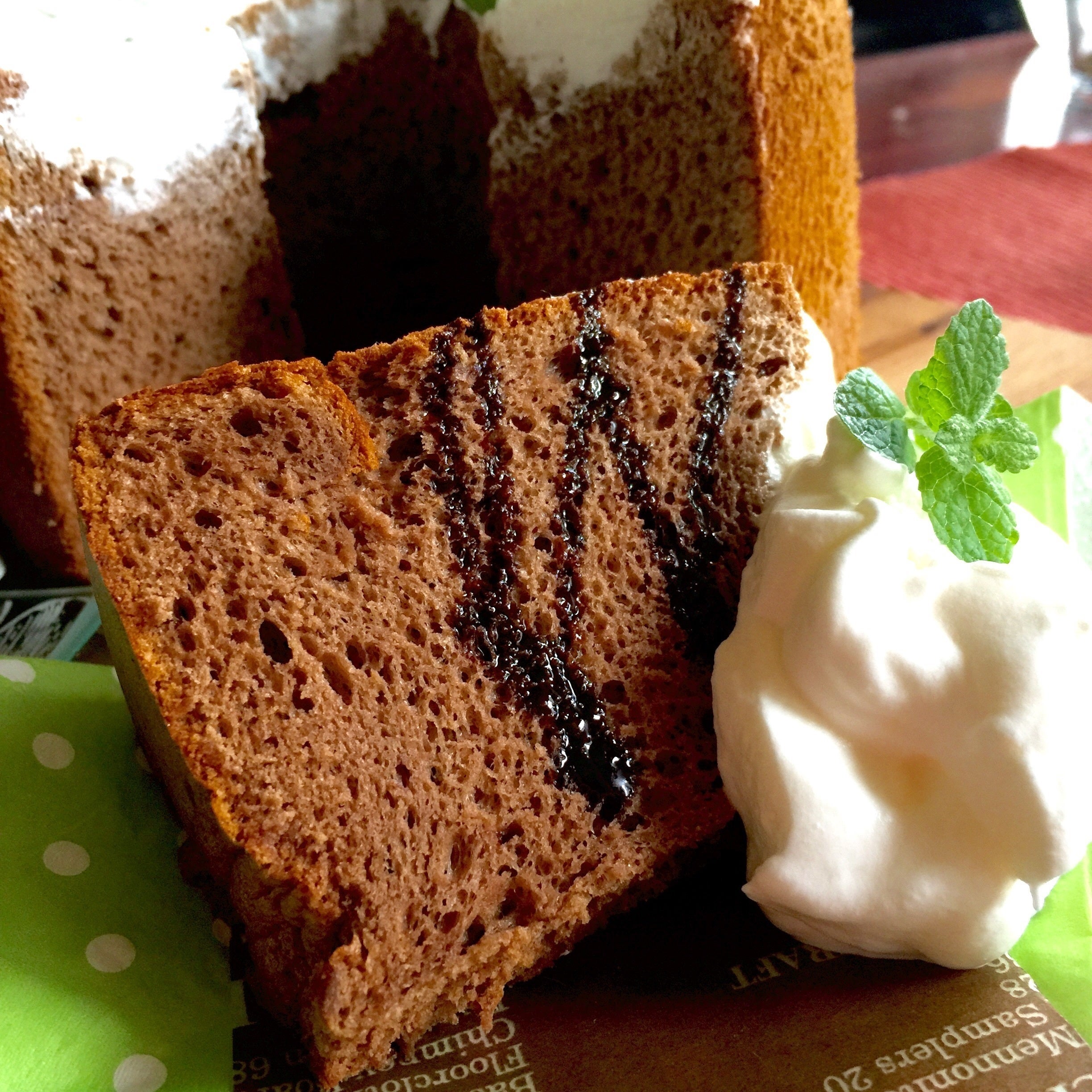 チョコレートシロップを入れたカフェモカ風シフォンケーキ