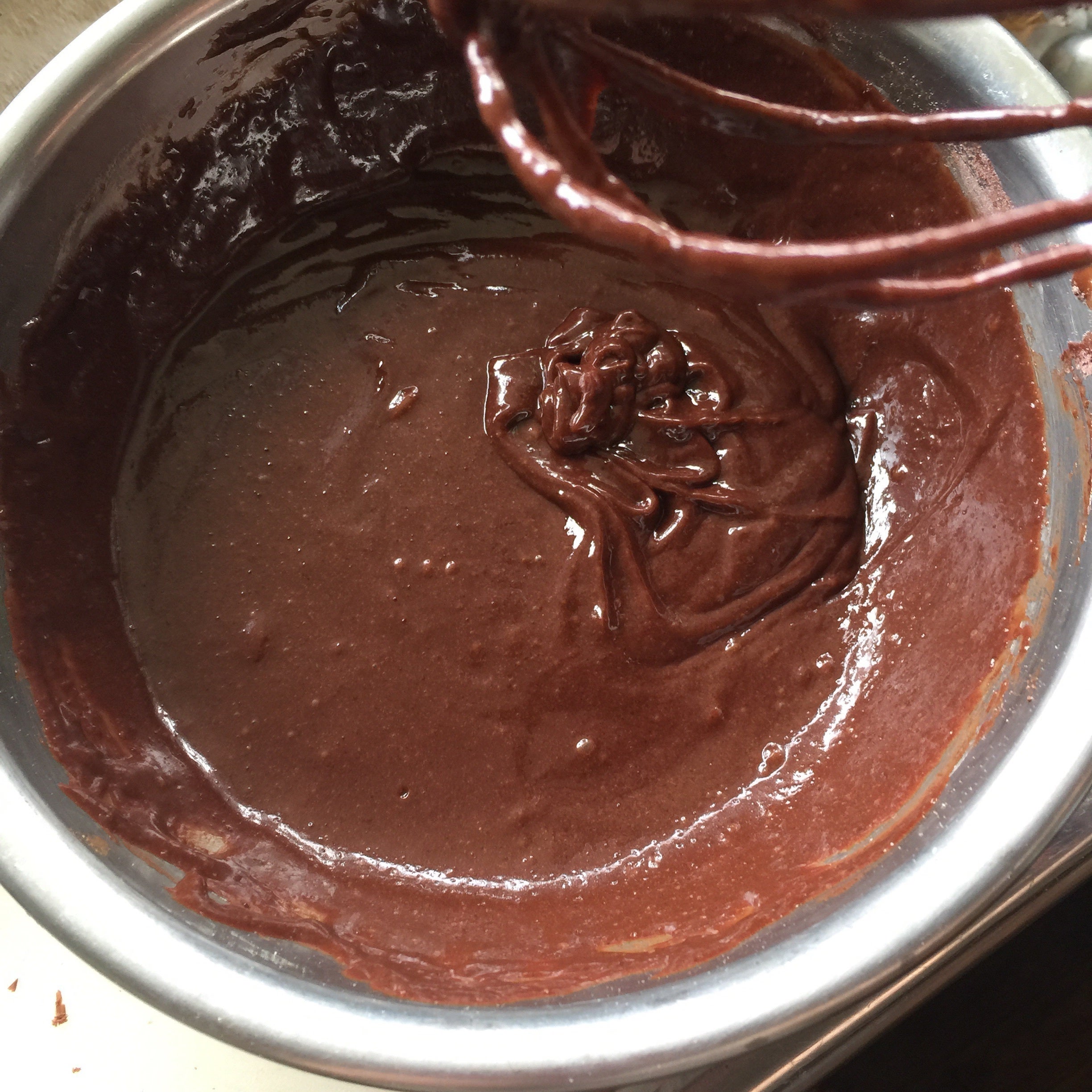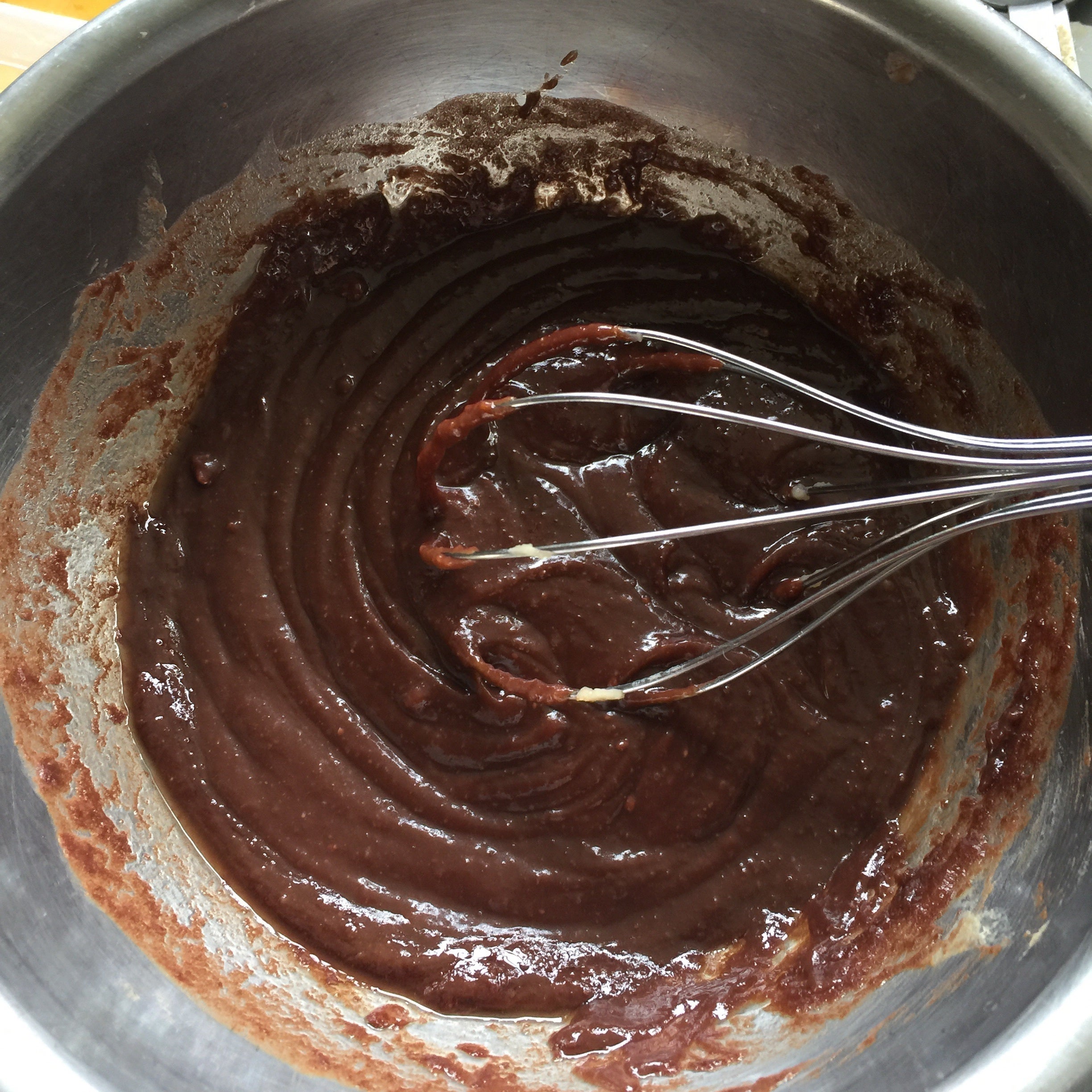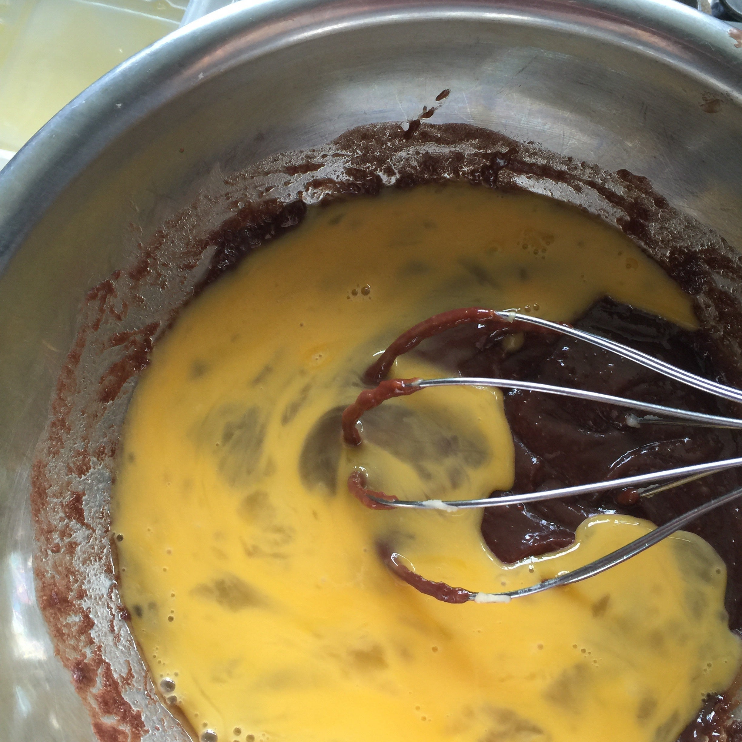 卵を良く混ぜます。⑥チョコレートを湯煎からだして泡立て器で良く混ぜ、マロンペースト、砂糖、卵、牛乳をその都度足しながら混ぜます。書いてある順番で混ぜて下さいね♪