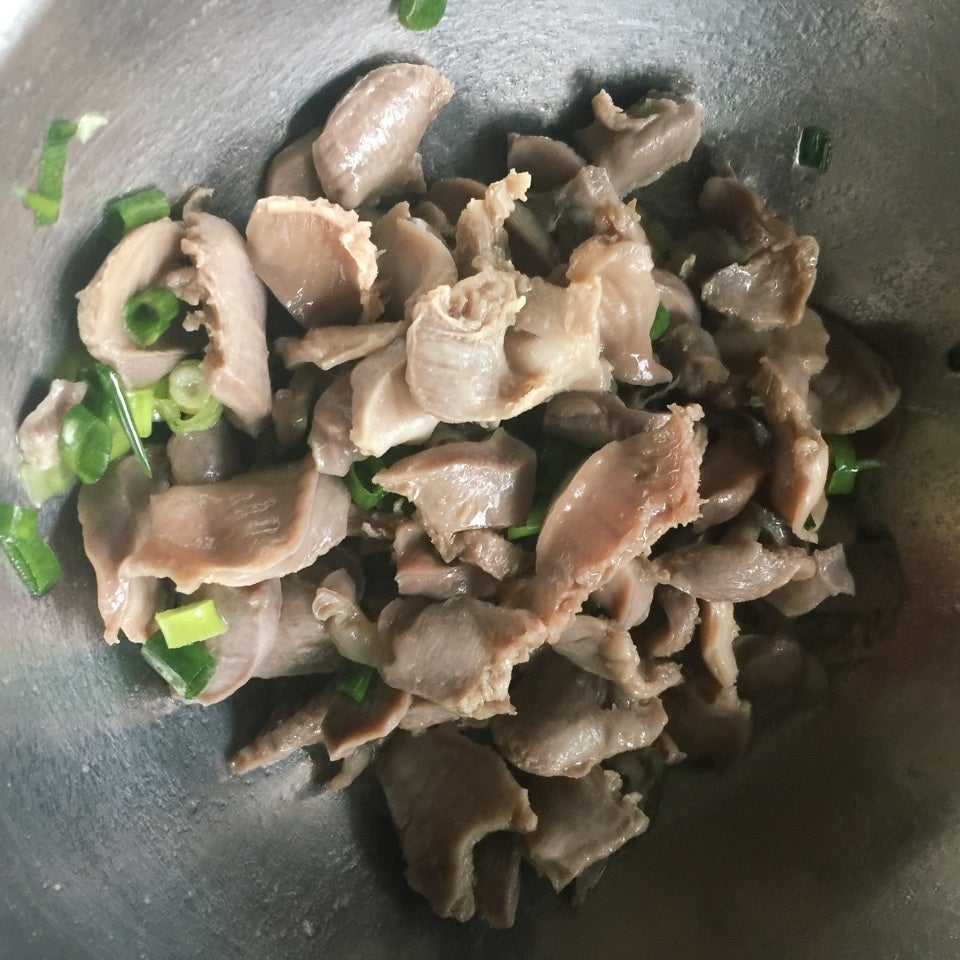 ⑥水気を切ったらタレのボウルの上に入れます。直ぐに混ぜずお酢を砂肝へと振りかけてからタレと合わせ、お皿に盛ったら出来上がりです。