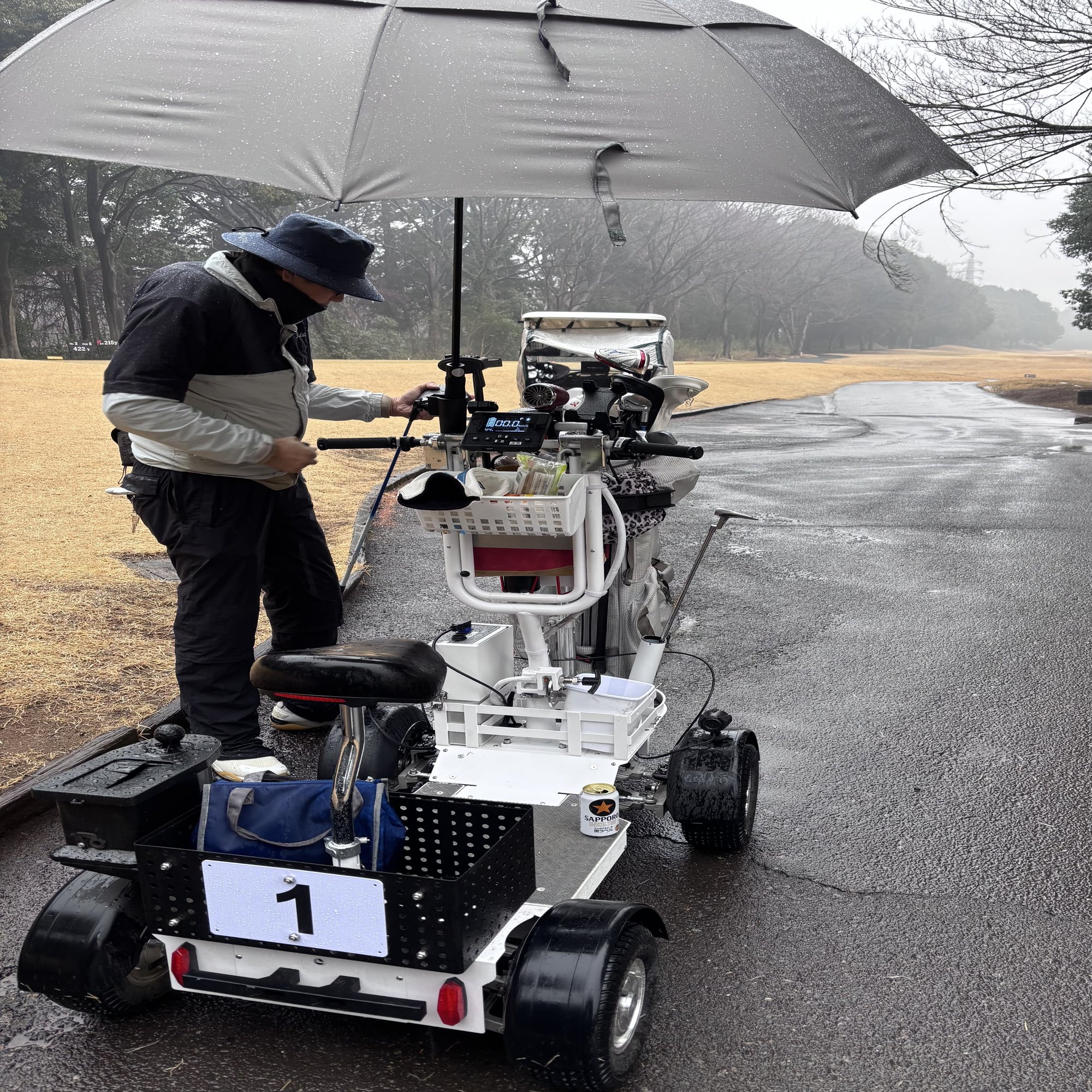 雨にも負けず、一人乗りカートでラウンドしてきました。
