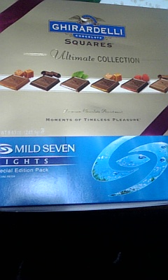USAど~も今日のおやつスタッフのKぇの米国土産ぇ~チョコレート&MILD SEVEN LIGHTSいろんな味のチョコレートうまかったぞぉ~~~ それとこのMILD SEVENSIDE SLIDE BOX初めて見たありがとぉ~~~(。・ω・)ノ゙