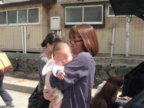 赤ちゃんを抱いて並んでいる姿を見て、