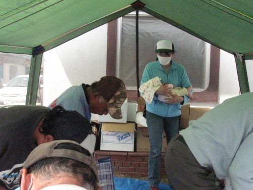 産後間もないのに、支援物資をもらうために