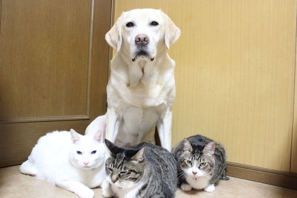 年賀状の素材は後は、毛むくじゃらちゃん達の集合写真だけ。