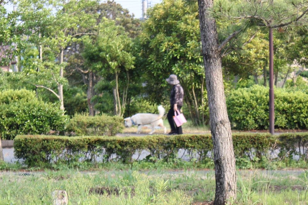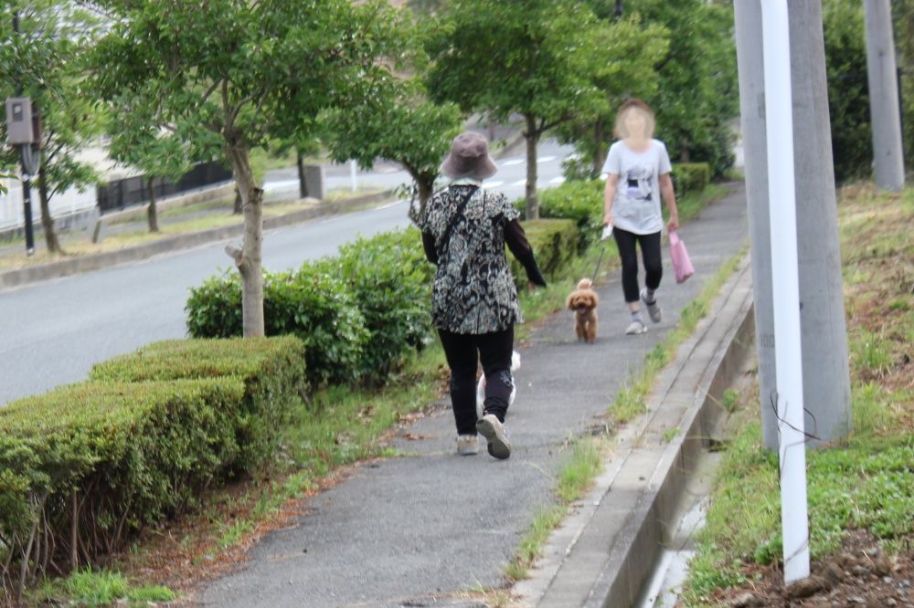 帰る頃になると犬のお散歩風景をよく見ました。