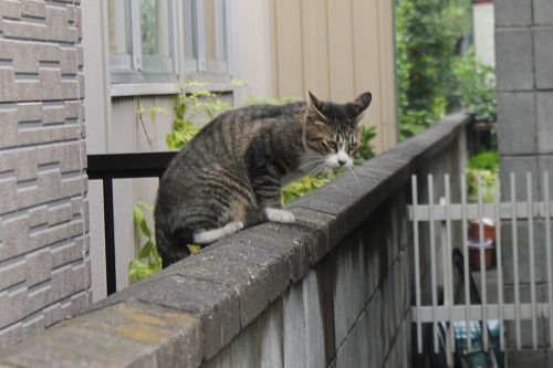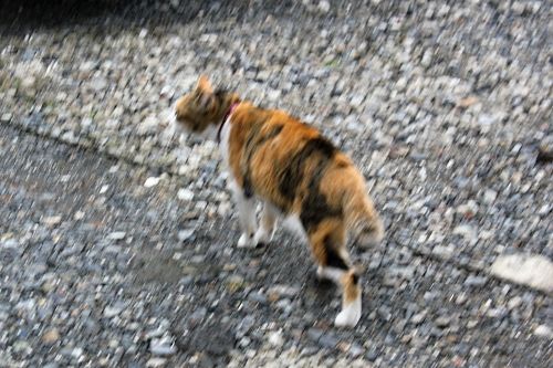 片隅で小さくうずくまり、三毛ちゃんを我が家の中に入れるより