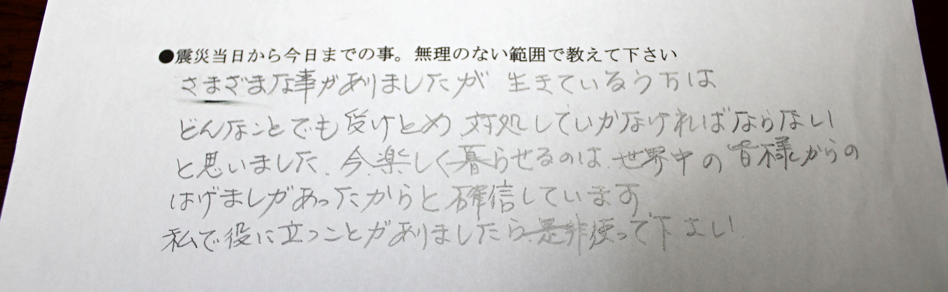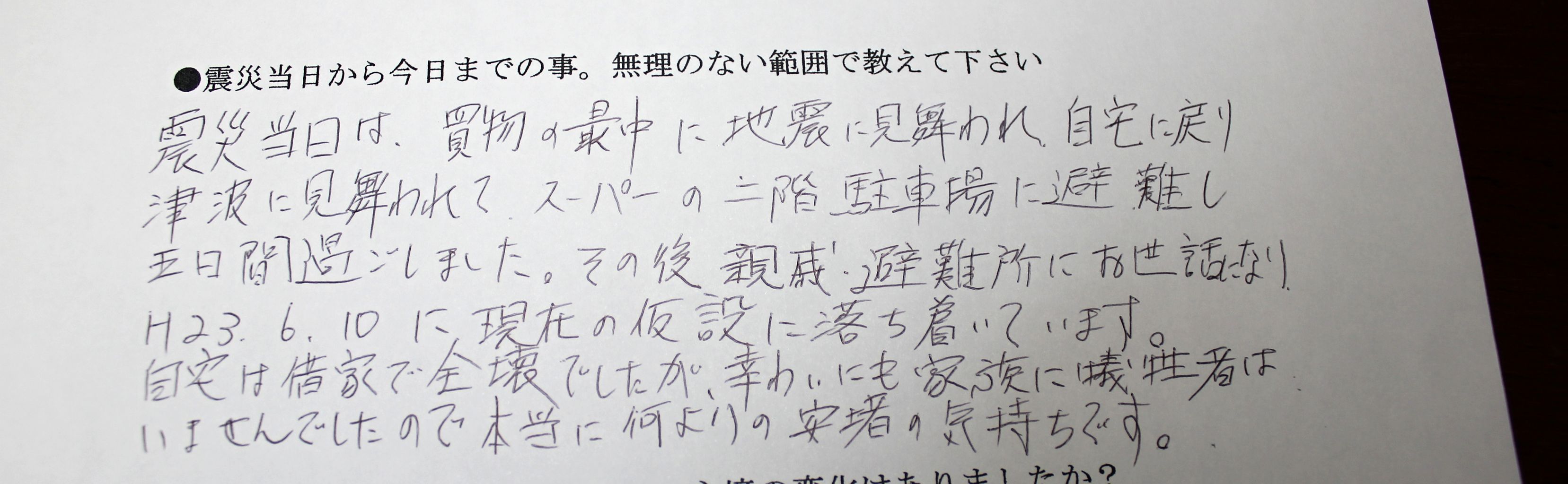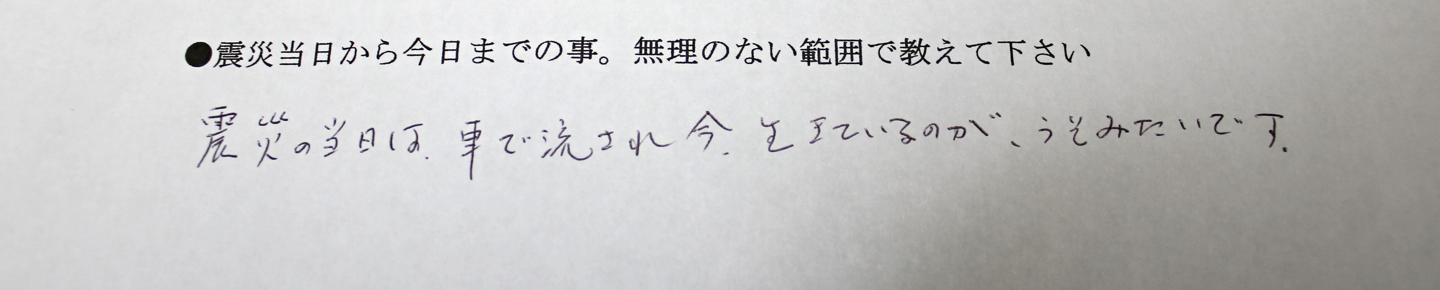 1:震災当日から今日までの事、無理のない範囲で教えて下さい