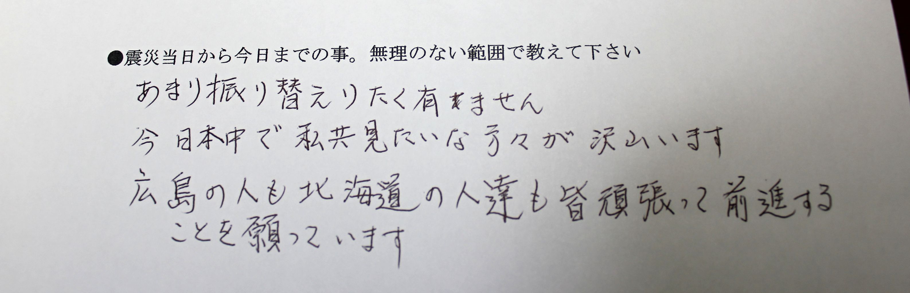 1:震災当日から今日までの事。無理のない範囲で教えて下さい