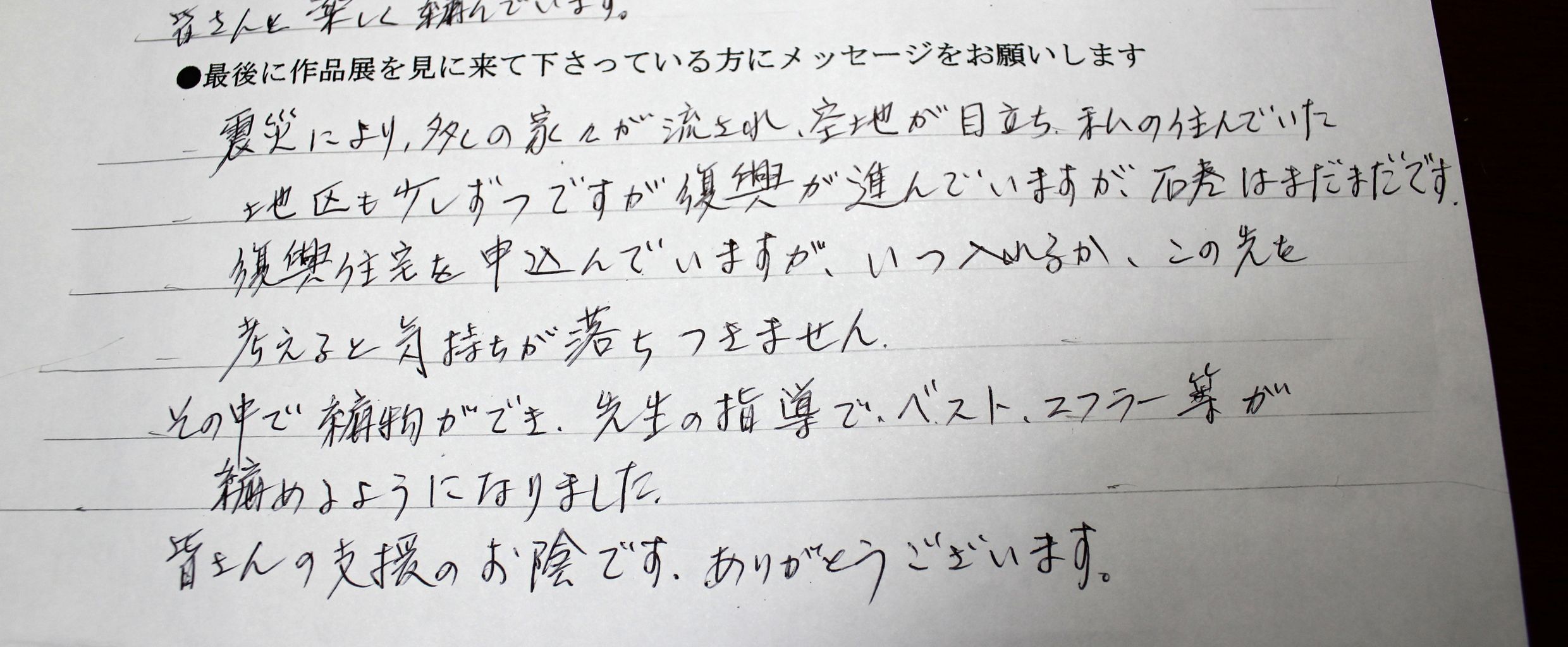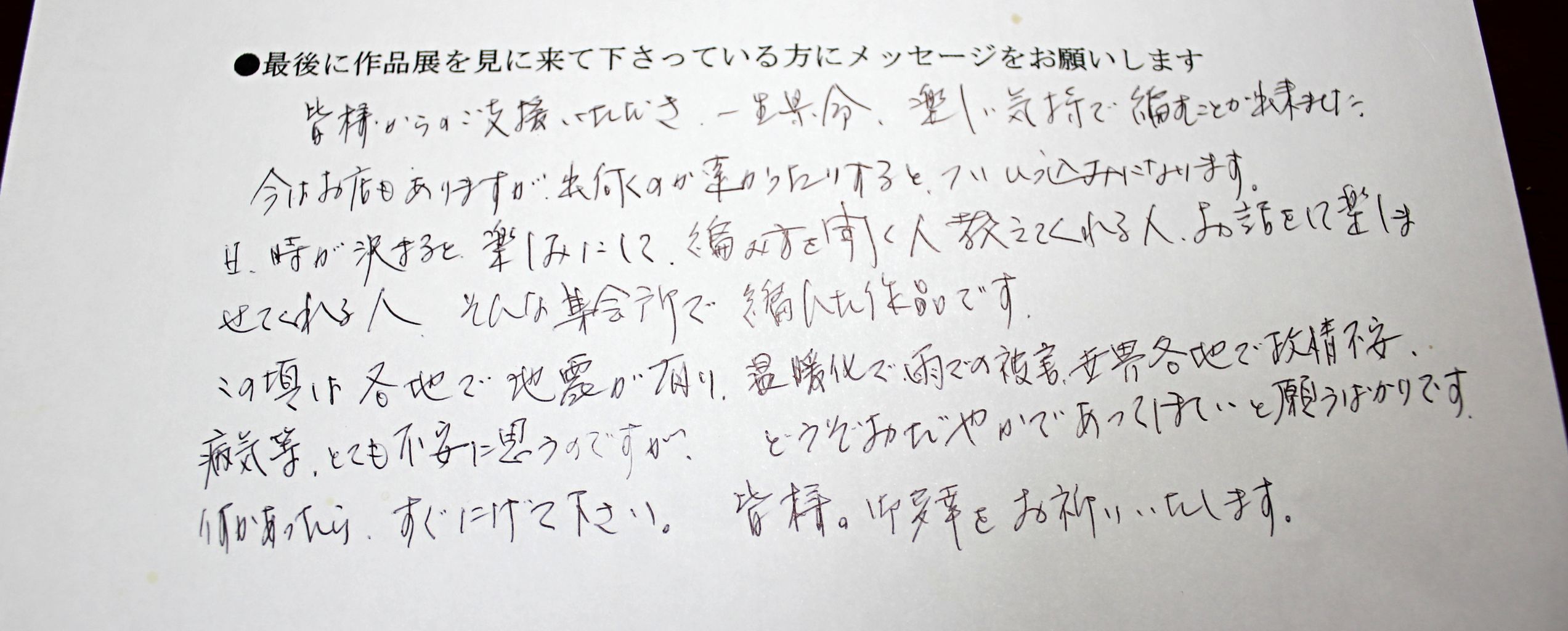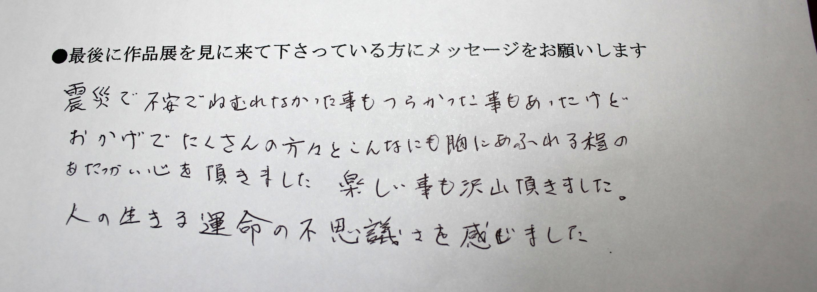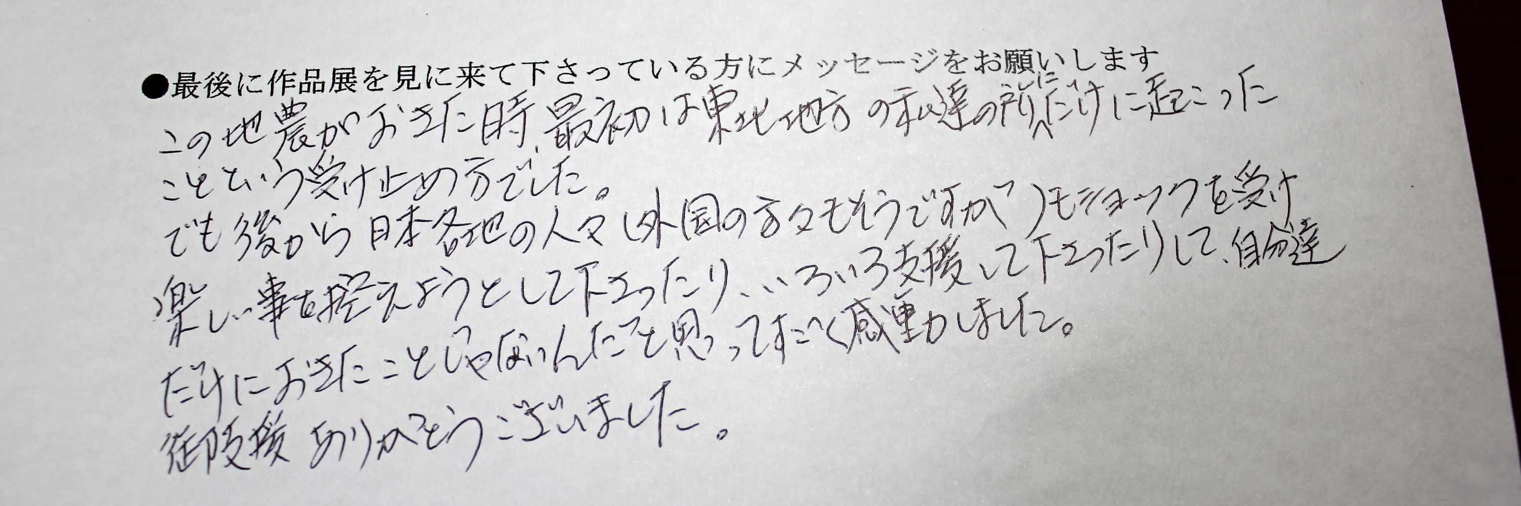 作品やメッセージを読んで、来場者にもメッセージを書いて頂きましたが