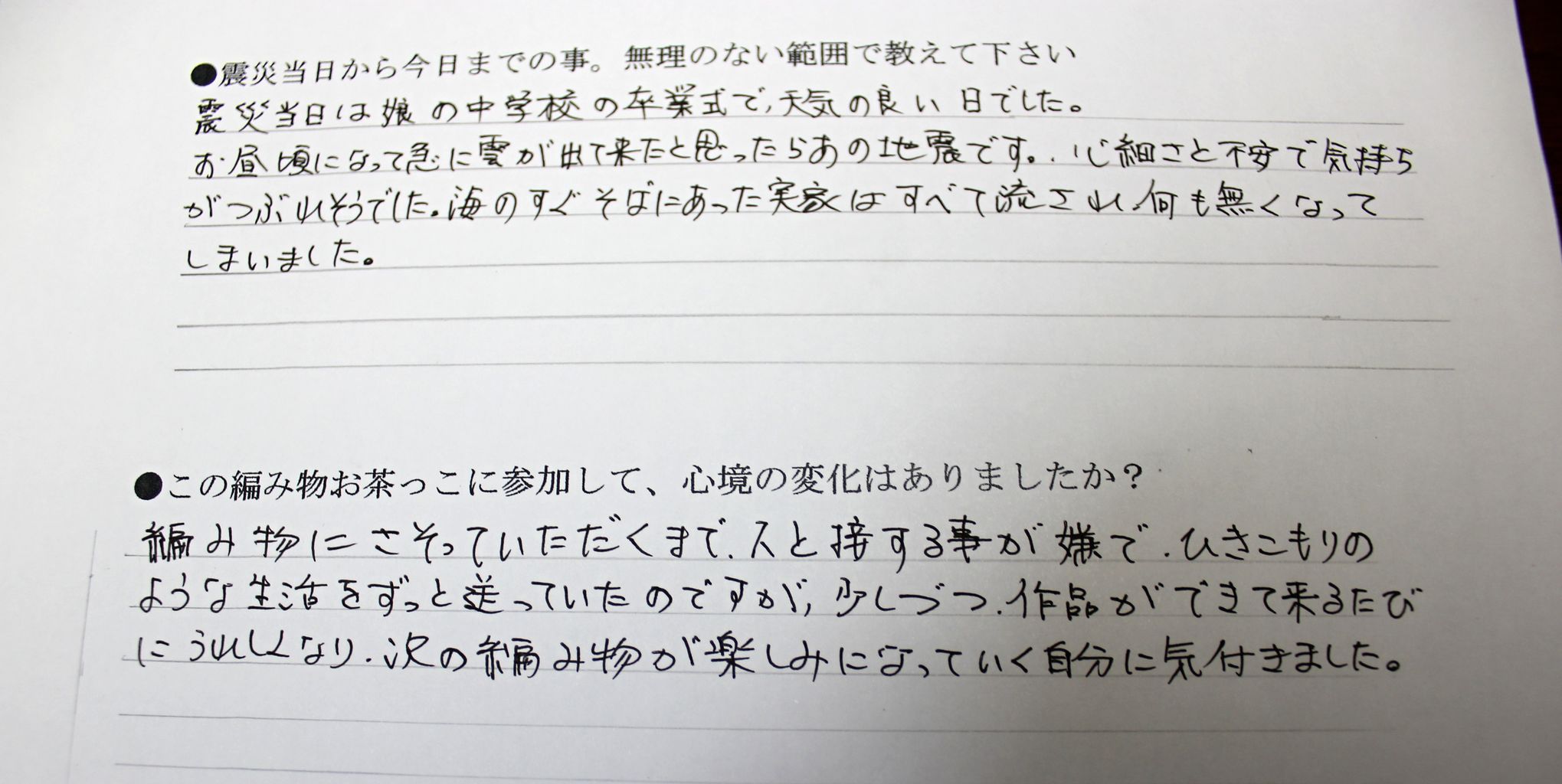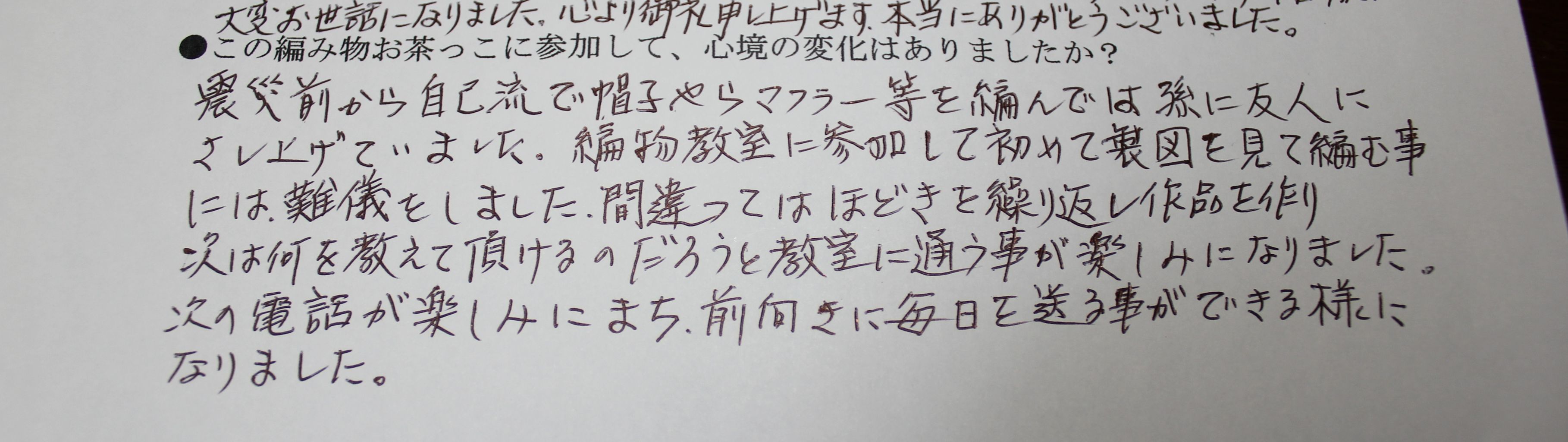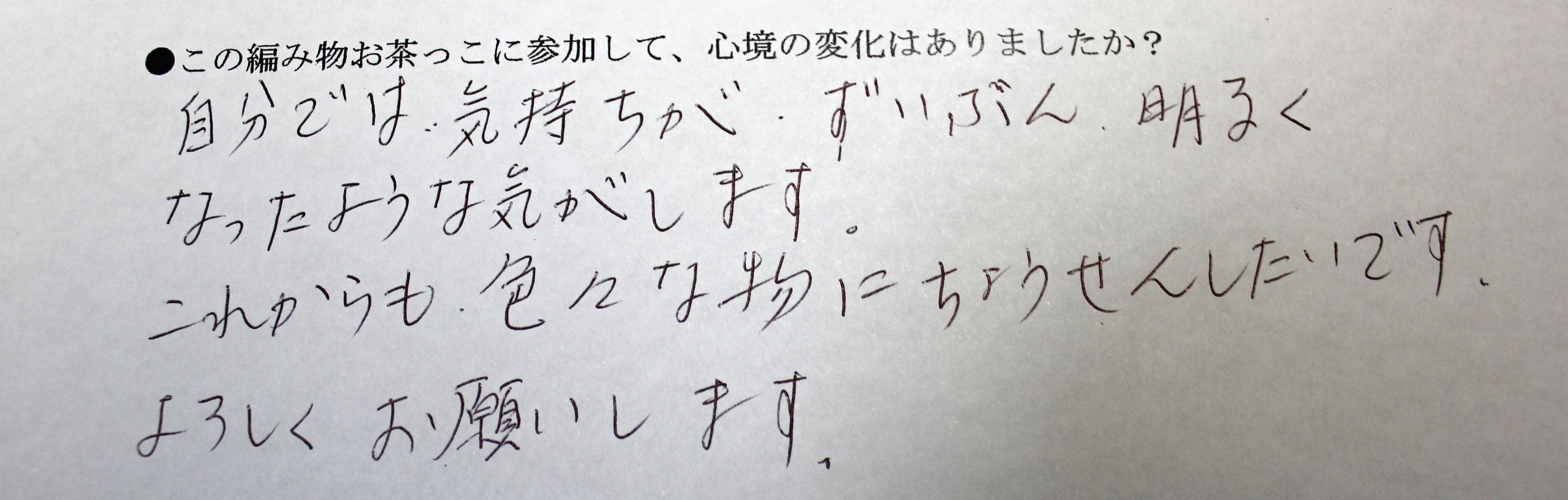 2:編み物お茶っこに参加して、心境の変化はありましたか?