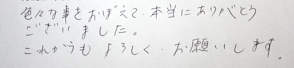 色々の作品が出来る様になり、ほんとうにありがとうございました。
