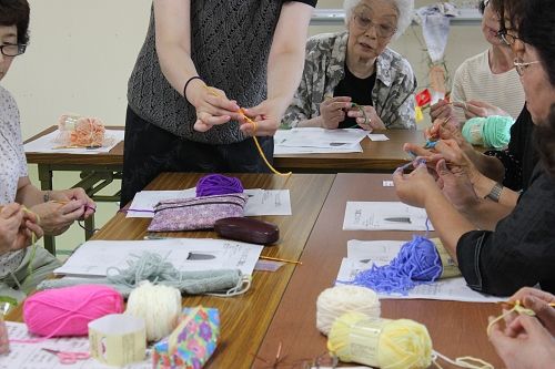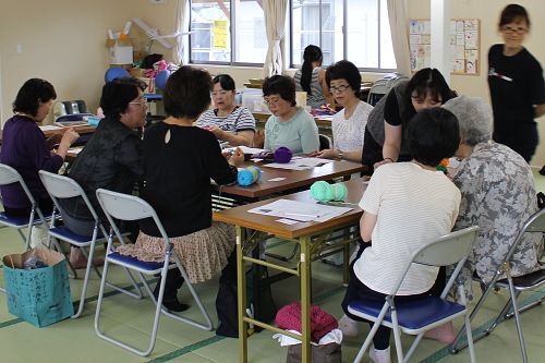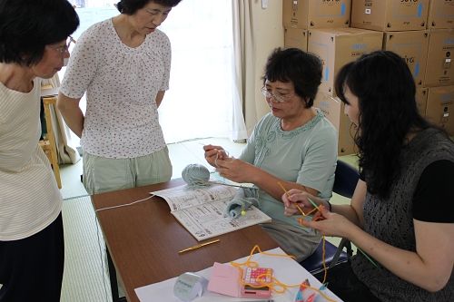 石巻市旭化成団地での被災地編み物お茶っこのみ