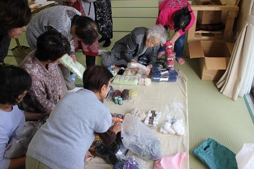 被災地編み物お茶っこ。