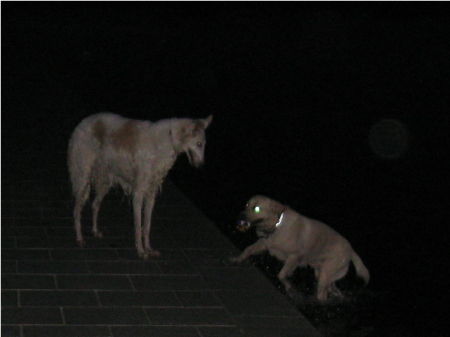 するとシエルは、咥えていたタオルを調整湖の中でポトン![]()