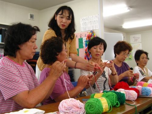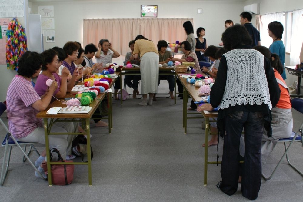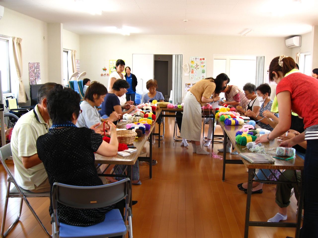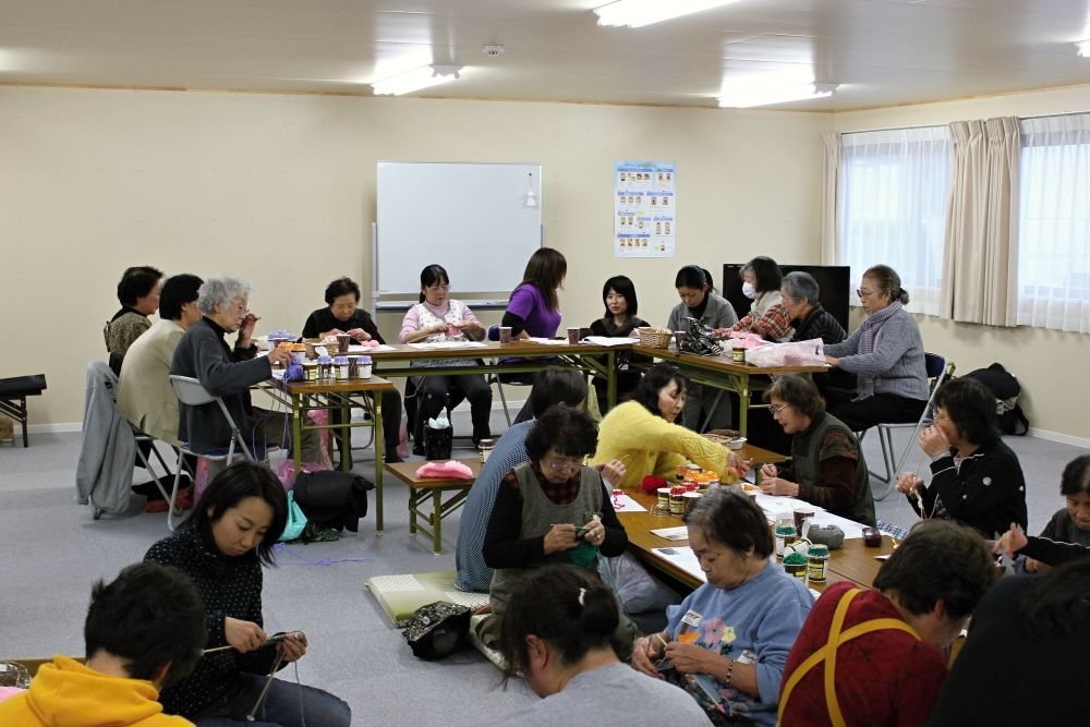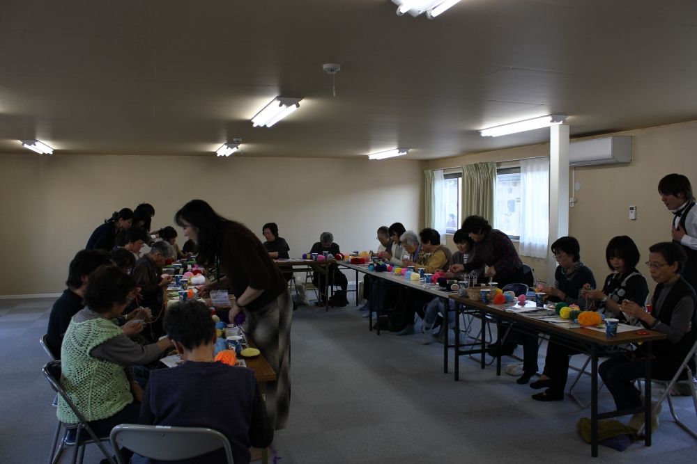 石巻市仮設旭化成団地集会所にて 編み物お茶っこ開催