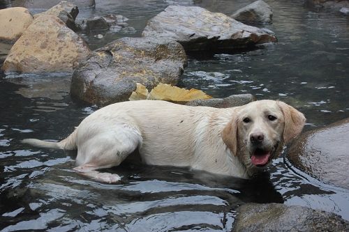 泳ぎながら温泉の効用が出てくれたらと思って連れてきました