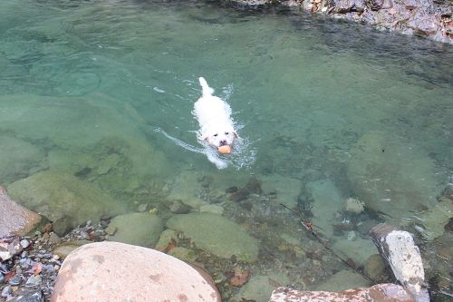 シエルも冷たくない川でくまさん遊びを堪能し、