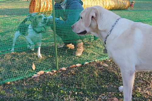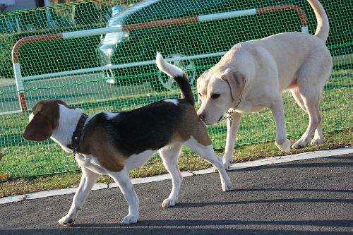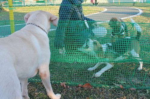 【月イチドッグラン】仲良くなるのはいつ?月イチドッグランで、最近シエルの天敵はビーグル・ベルちゃん犬見知りのベルちゃんですがいつも遊んでいる子とは仲良くできるのです しかしシエルとは・・・・・ なかなか距離が縮まりませんネット越しなら大丈夫かな?とご挨拶をしてみますが ダメだぁ~~~ 早く一緒に遊べるようになれるといいね 今日のアランシエルが夕飯を食べていたらのぞき込んできましたよヨーグルトを狙いに来たみたいじゃぁ、少し出してあげるね体を乗り出してなめてます シエルもおこぼれもらえてラッキィお嬢ちゃん、お顔にヨーグルトくっついてるよ