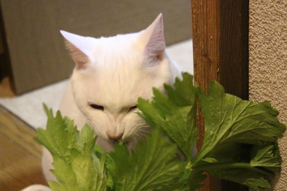 そんなセロリの葉っぱをむしゃむしゃと食べるお坊ちゃま。