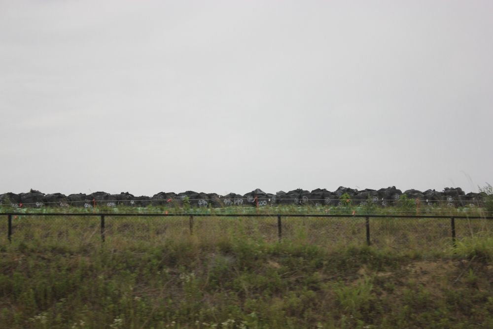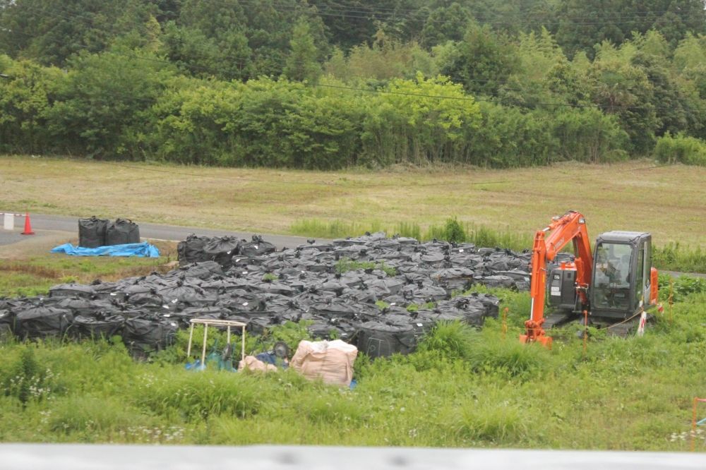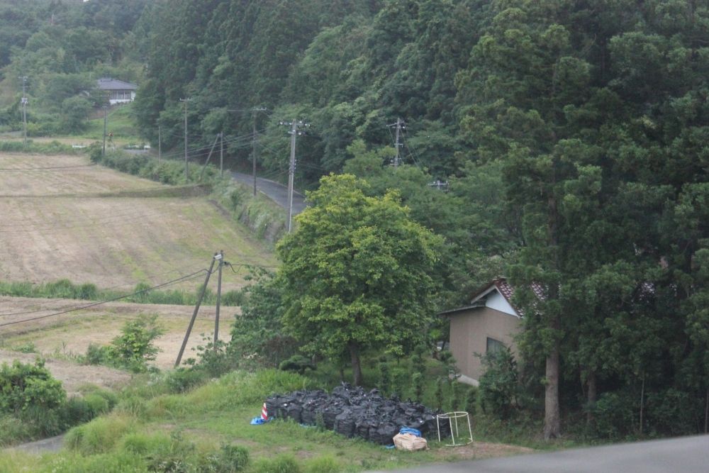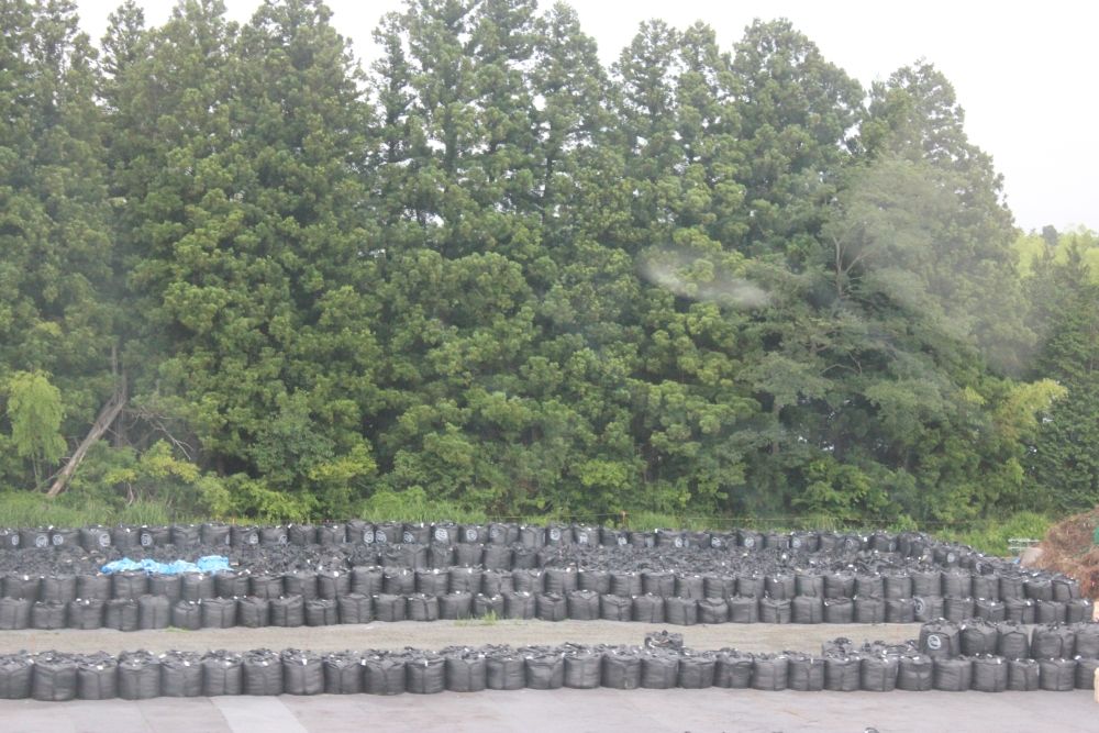 あちらこちらには、放射性廃棄物の黒い袋が並んでいます。
