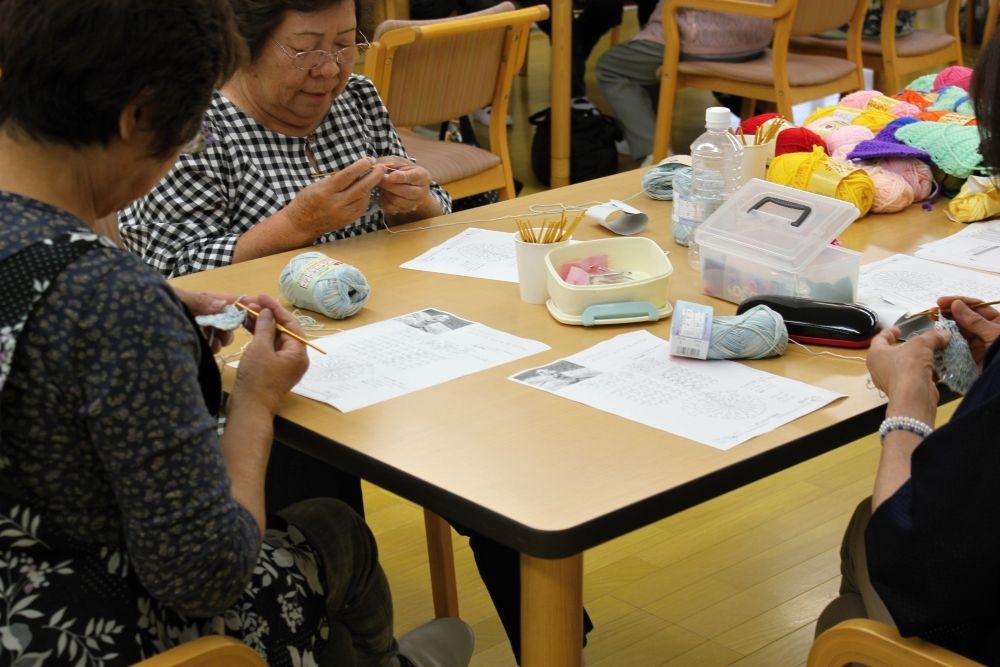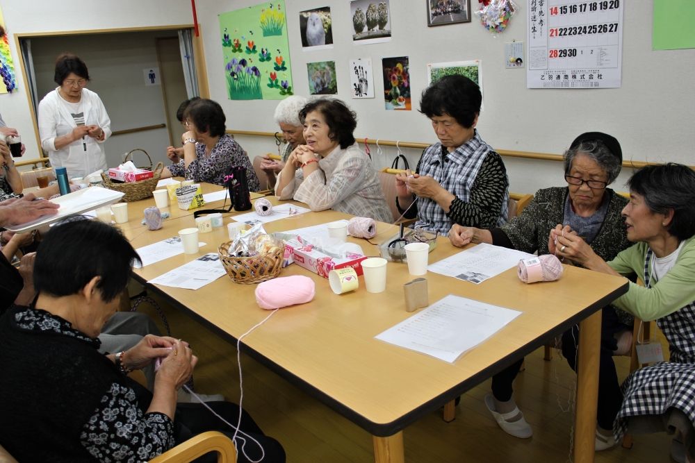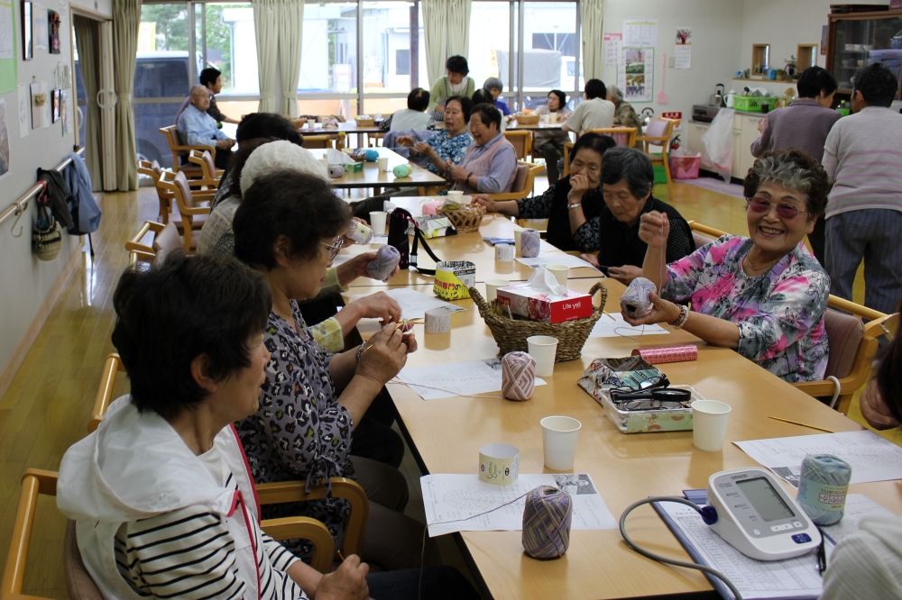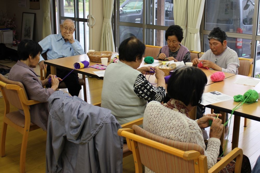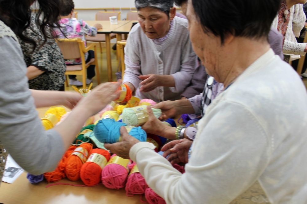 被災地編み物お茶っこのみ