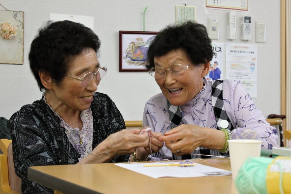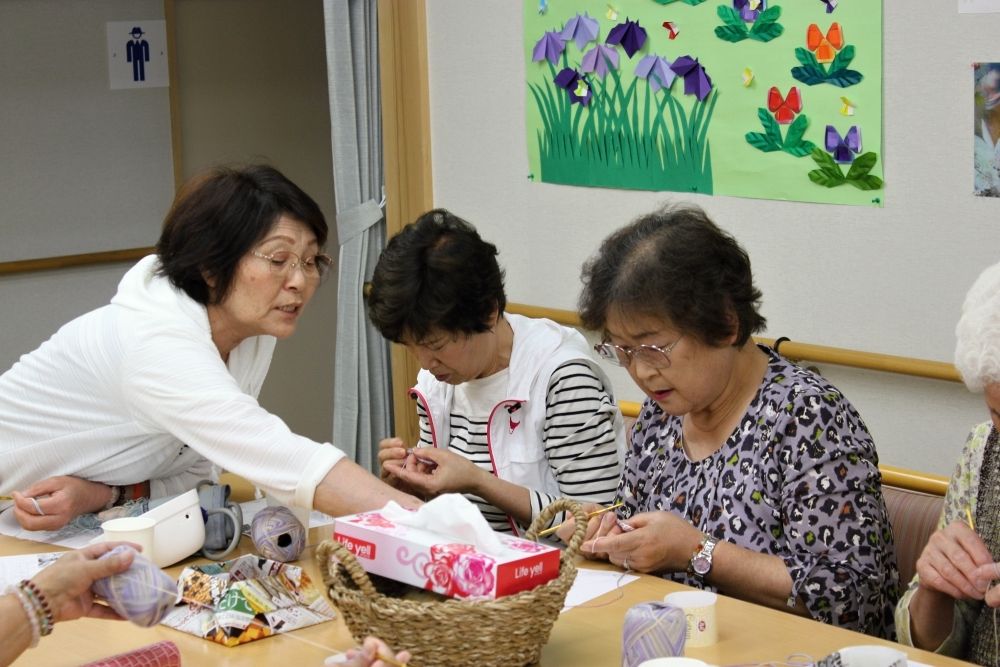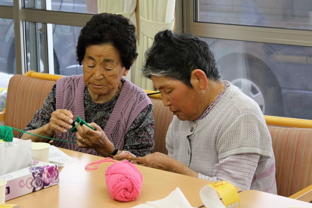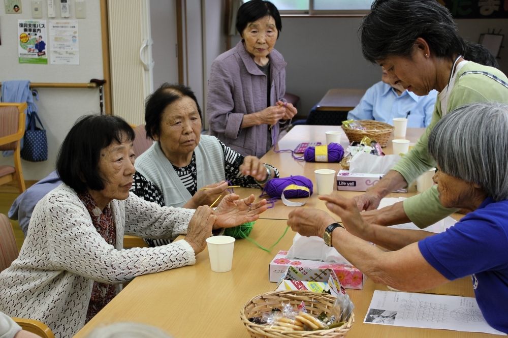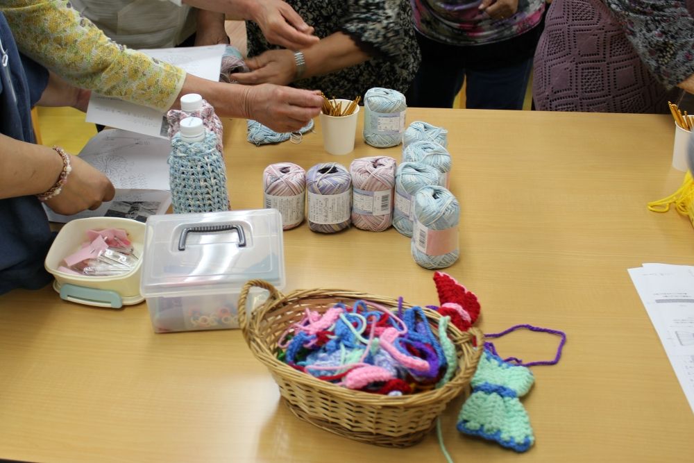 被災地編み物お茶っこのみ