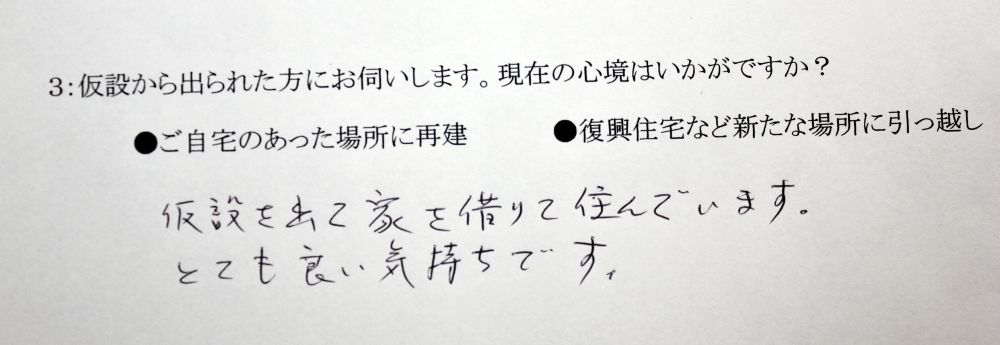 仮設を出て家を借りて住んでいます。