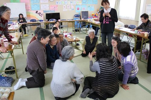 被災地編み物お茶っこのみ
