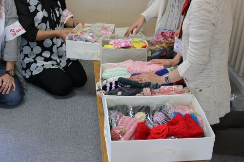 被災者の方へと編んでくださった物をお預かりし、