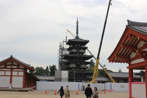 現在工事をしている塔は、建立して1300年にして