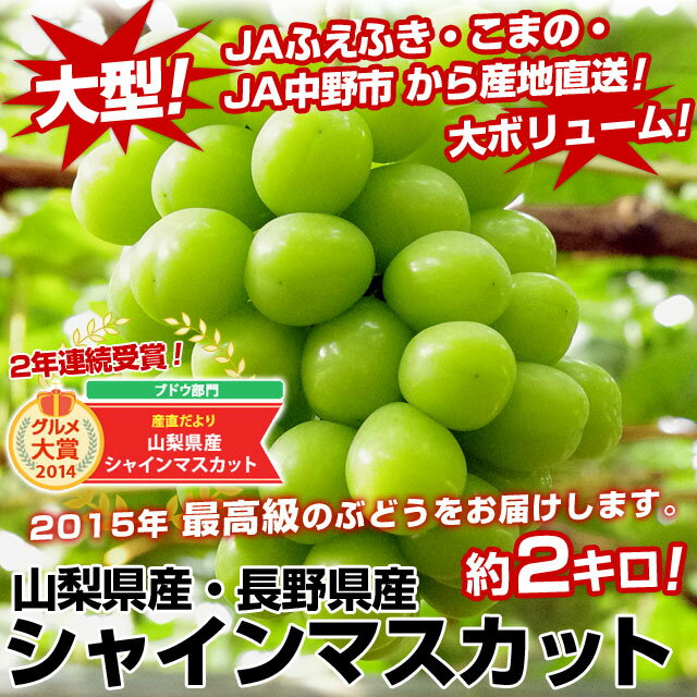 - グルメ大賞受賞! 山梨県産・長野県産 シャインマスカット約2キロ(3房~4房)