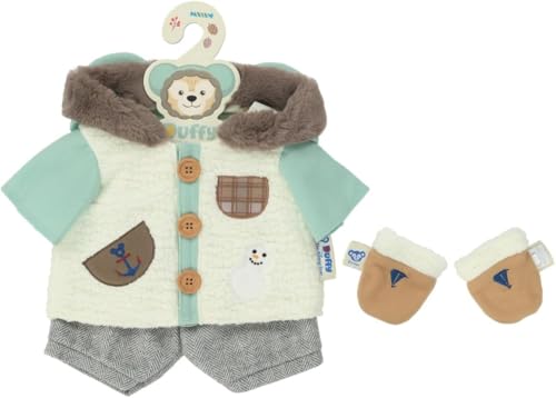 チャームには、あたたかそうなコスチューム姿のダッフィーたちがデザインされています