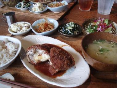 ミユユはハンバーグ、私は豚ヒレのチーズ巻き揚げを注文。