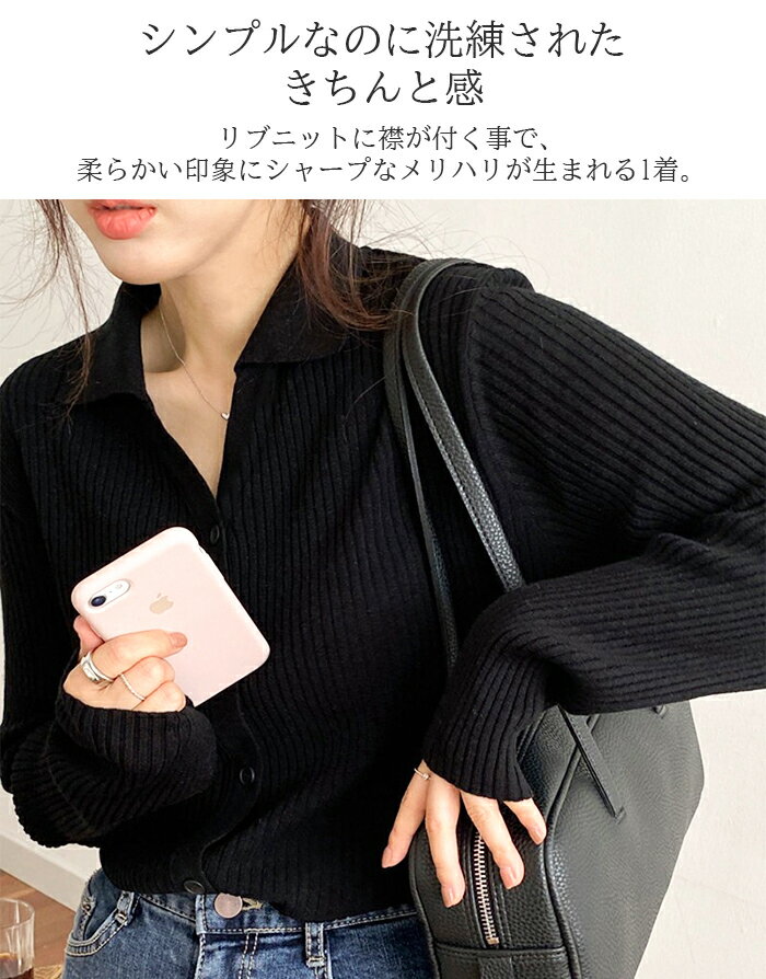 襟付きのリブカーディガンに
