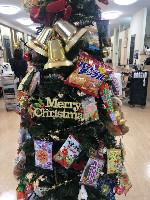 もともとはハリボーのグミを飾っていたのですが、気が付くと「おかしなつりー」というか「駄菓子のツリー」になっていました。