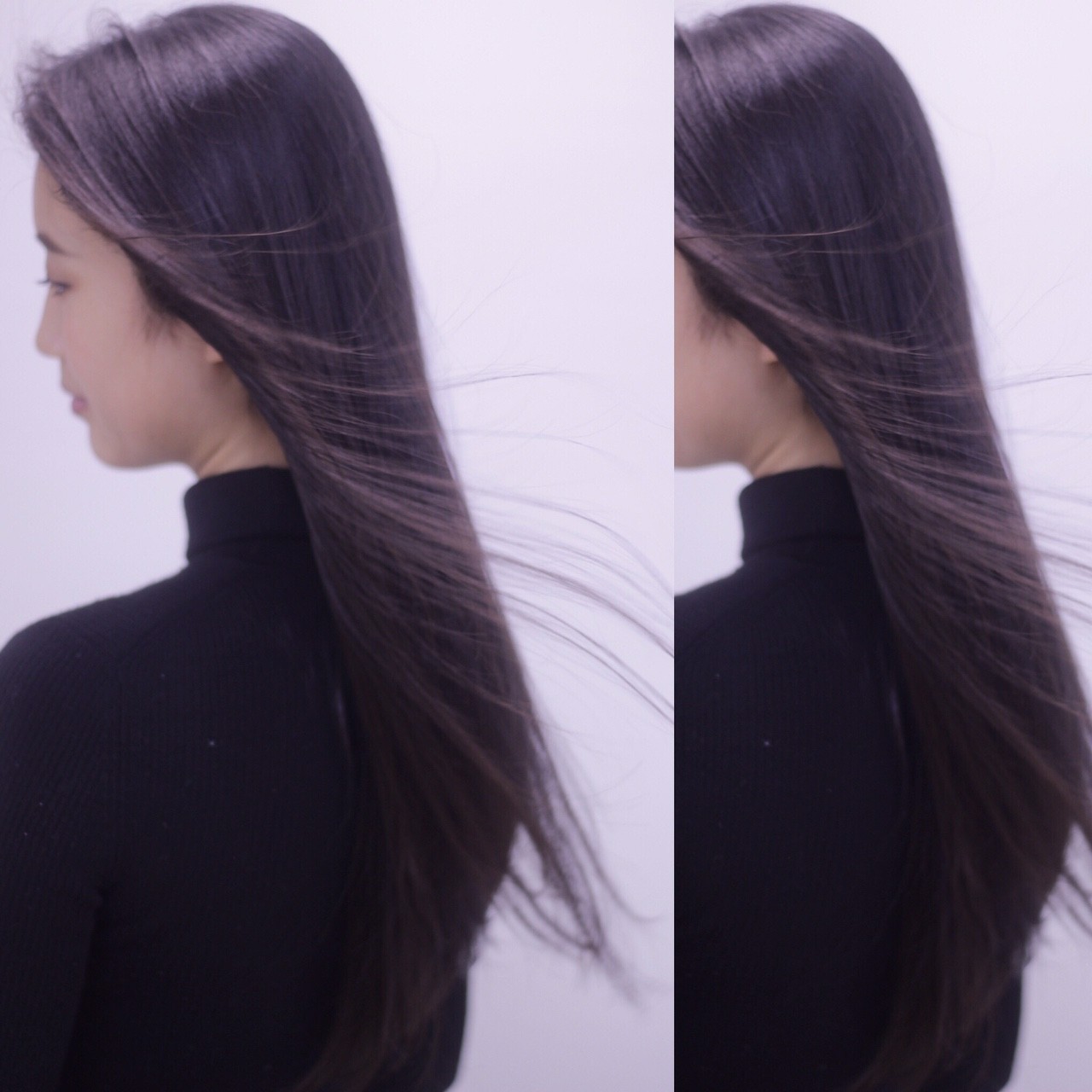 艶やかで軽い質感の髪の毛へ潤いを内部から与えるサラ艶トリートメントシステムをオーガニック縮毛矯正と炭酸スパを組み合わせました。 19980円にておこないます。