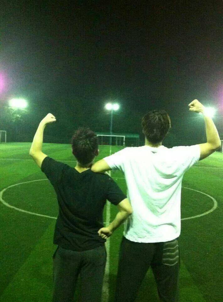 Yunho with @ Choi HyoJe playing football a year ago