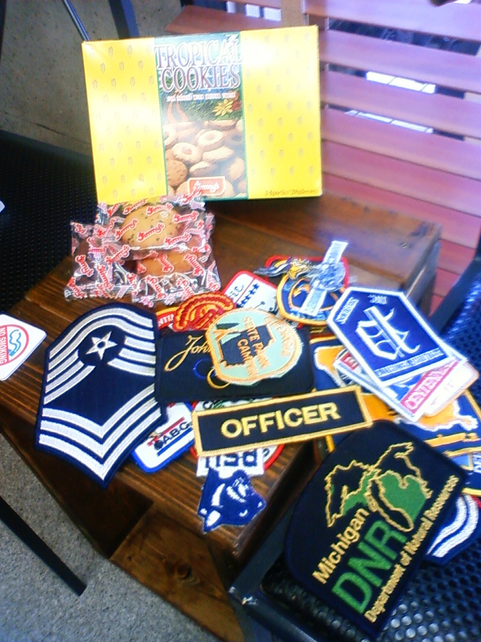 Jimmy's台風一過の青空で気持ちがイイですね~先日、うちの影のスタッフと噂されているトケちゃんが沖縄への里帰りから帰ってきて、お土産を持って来てくれましたもう沖縄行ったら必ず立ち寄るJimmy'sそこのトロピカルクッキーかなり旨いッスそして頼んでいた大量のUSワッペンこのワッペンは当店の雑貨コーナーにて¥200~販売してますトケちゃんりがとうね