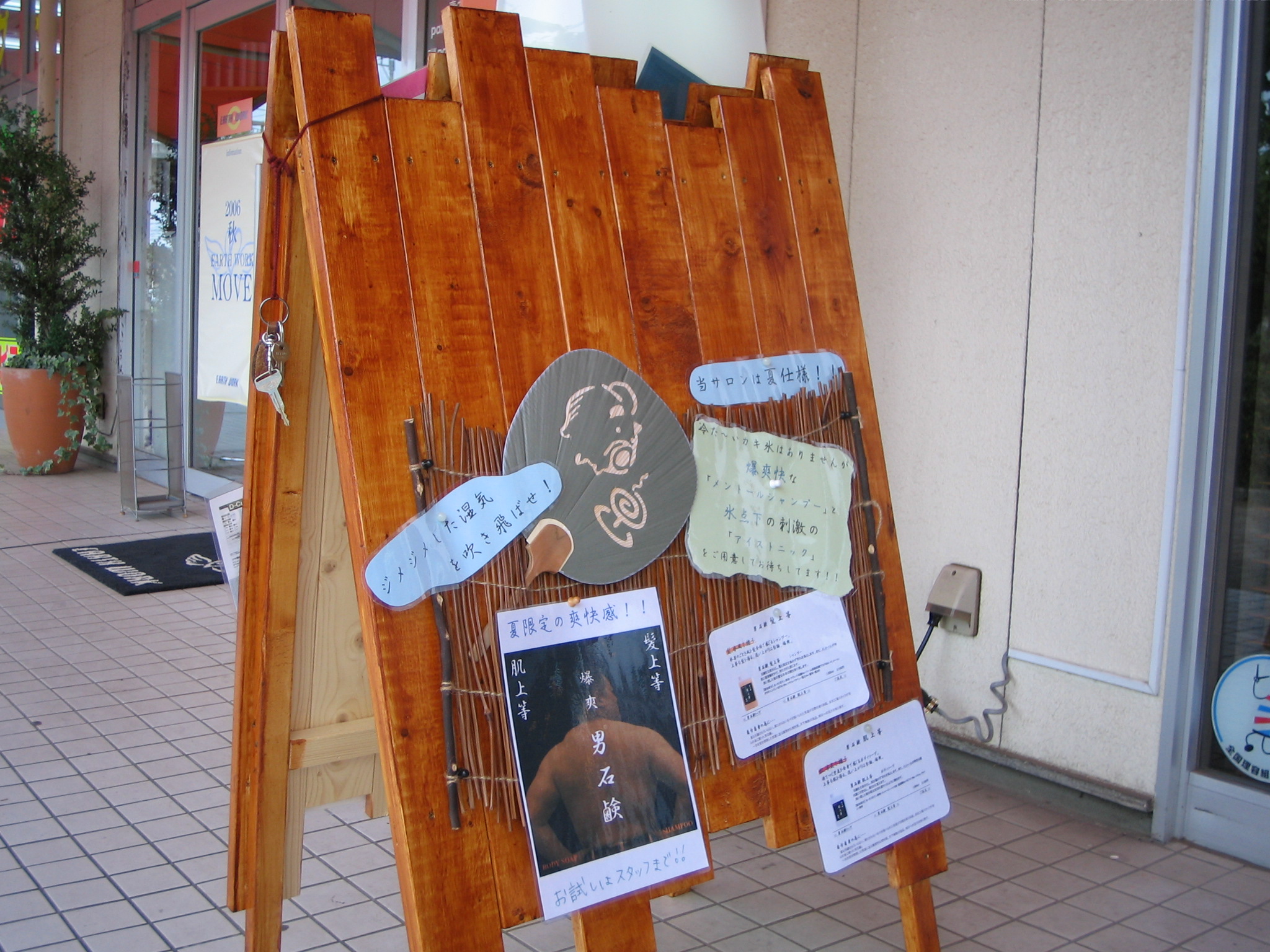 DIYイカン、遺憾、医官・・ついブログの更新をサボってしまう当サロンではスタッフの手作りの物が多い今回作ったのは看板切る人、塗る人、飾る人、それぞれ分担して・・・こんな感じの看板ができました追伸 mixiはじめたんですよ~ ブログとかぶってますが興味のある方は検索してね!! ニックネームは「R's iwata」です!! マイミクしてね