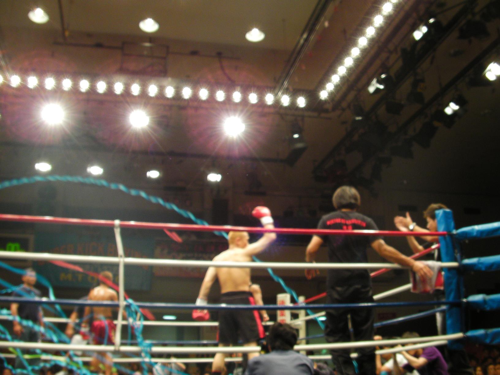 やっぱり肘だよ肘スタッフみんなで楽しんできた昨日のレクリエーション敬愛する兄貴 小野瀬邦英会長率いるSQUARE UP KICKBOXING道場 第2回興業2009継続シリーズ!!やはり3回戦クラスはKOが多くて面白いそしてメインイベント小野瀬会長の血祭り伝説を継承する男狂拳 須賀聖二残念ながら判定負けそしてなんと試合後のマイクパフォーマンスで引退を宣言33歳、良く頑張ったやっぱりキックは面白れぇP.s最近の選手は肘の使い方が上手くない・・・やっぱり肘だよ肘