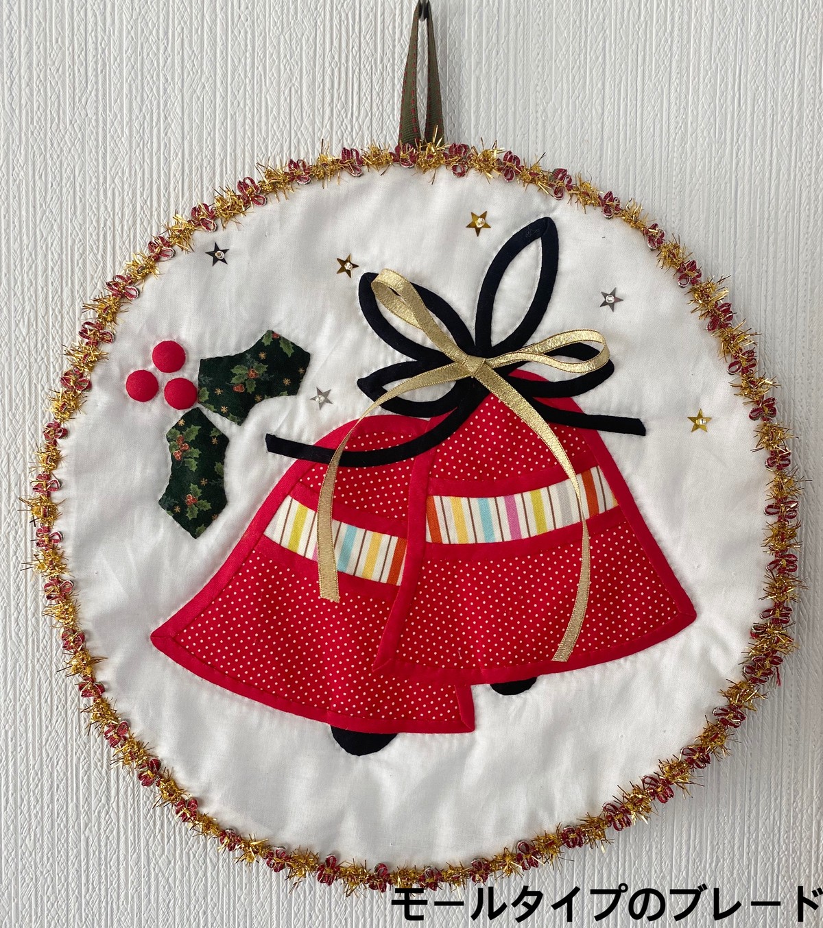 このベルの周りのバイヤステープはこっとんさんの手作り。