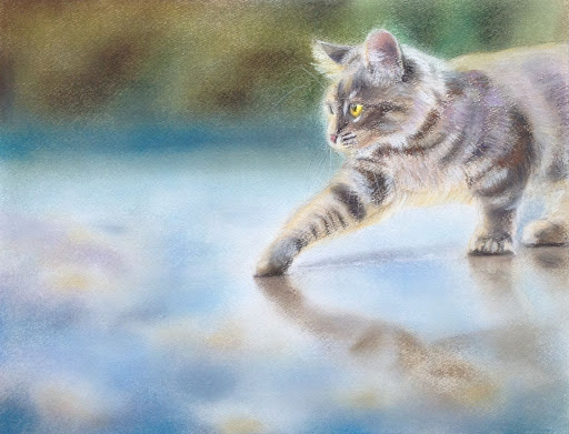 ほっこりとする温かみのあるパステル画でわたしも大好きなので,友人が家族の一員として大切にしている(いた)ペットの絵をプレゼントした事がありますが,とても喜ばれました♪