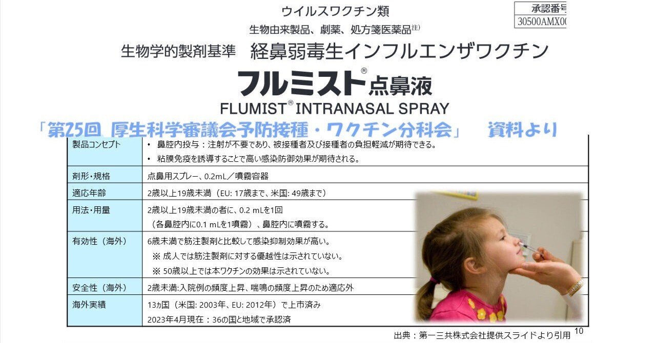 現在お子様用のフルミストという鼻から