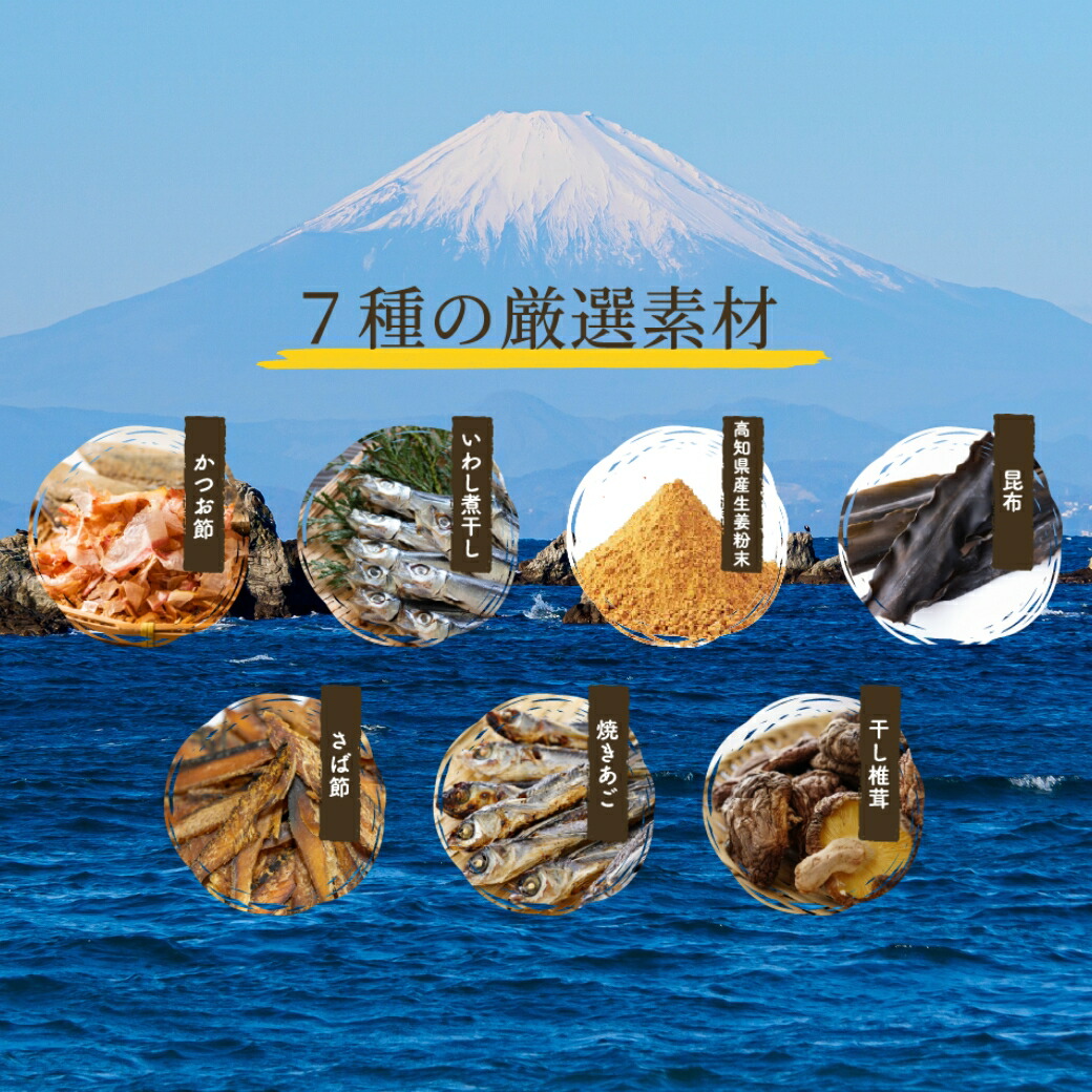 魚、昆布、干しシイタケ、生姜。