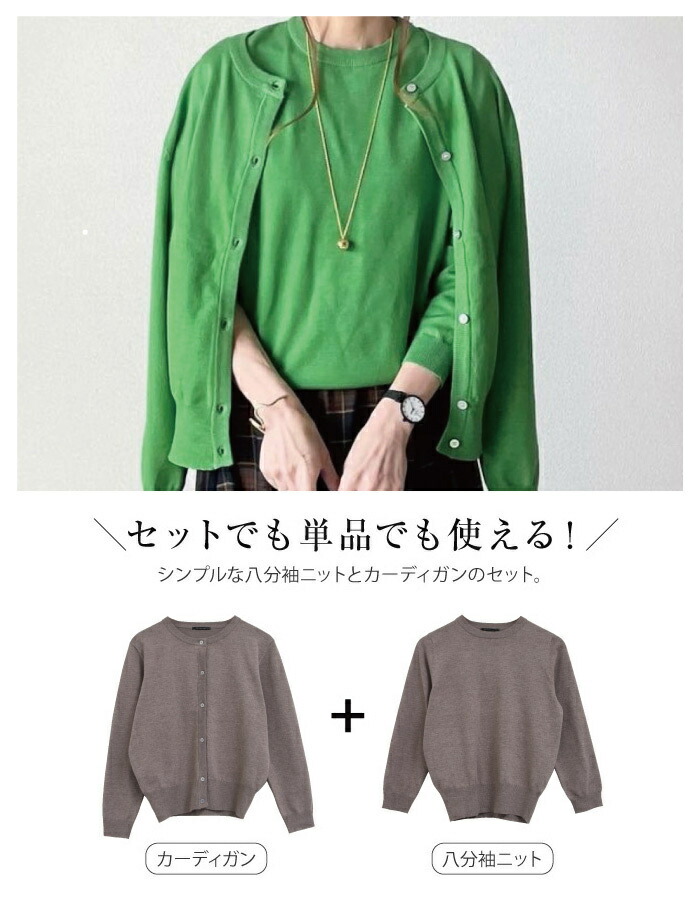 長袖のニットとカーディガンがセットになってるのでそれぞれ単品でも着られる!