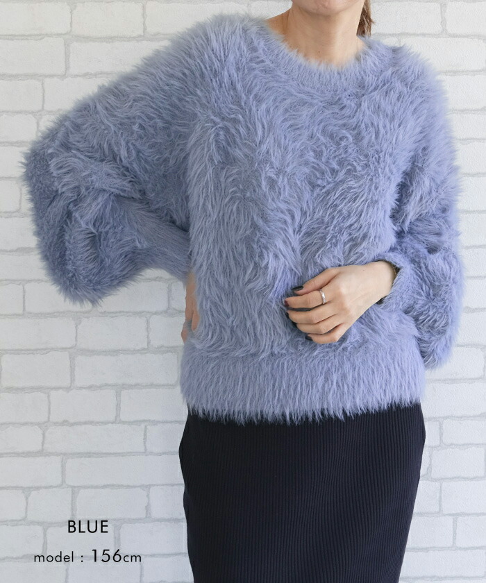 もこもこのシャギーニットなのにすっごいなめらかな肌ざわりで直肌に着てもチクチクしない!